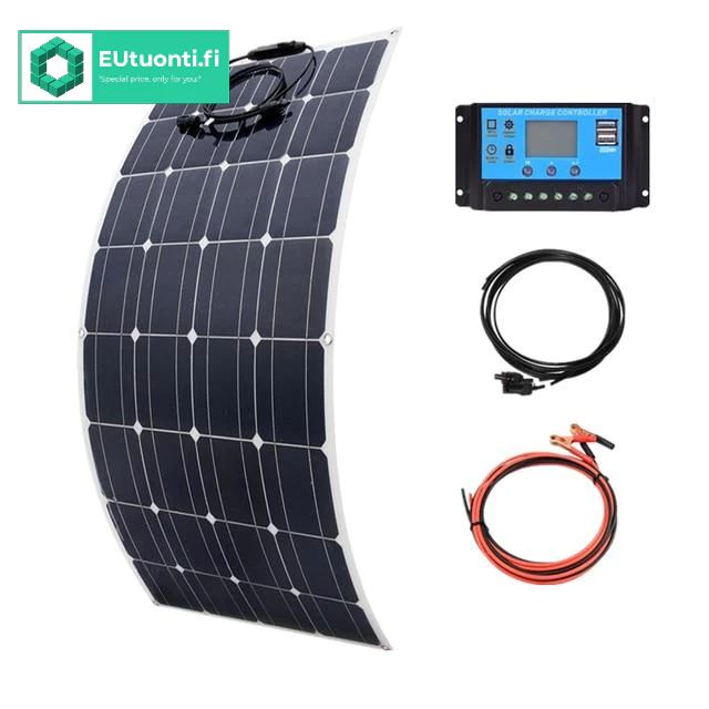 100W Taipuisa Aurinkopaneeli järjestelmä (Paneeli+Säädin+Johtosarja), Lappeenranta