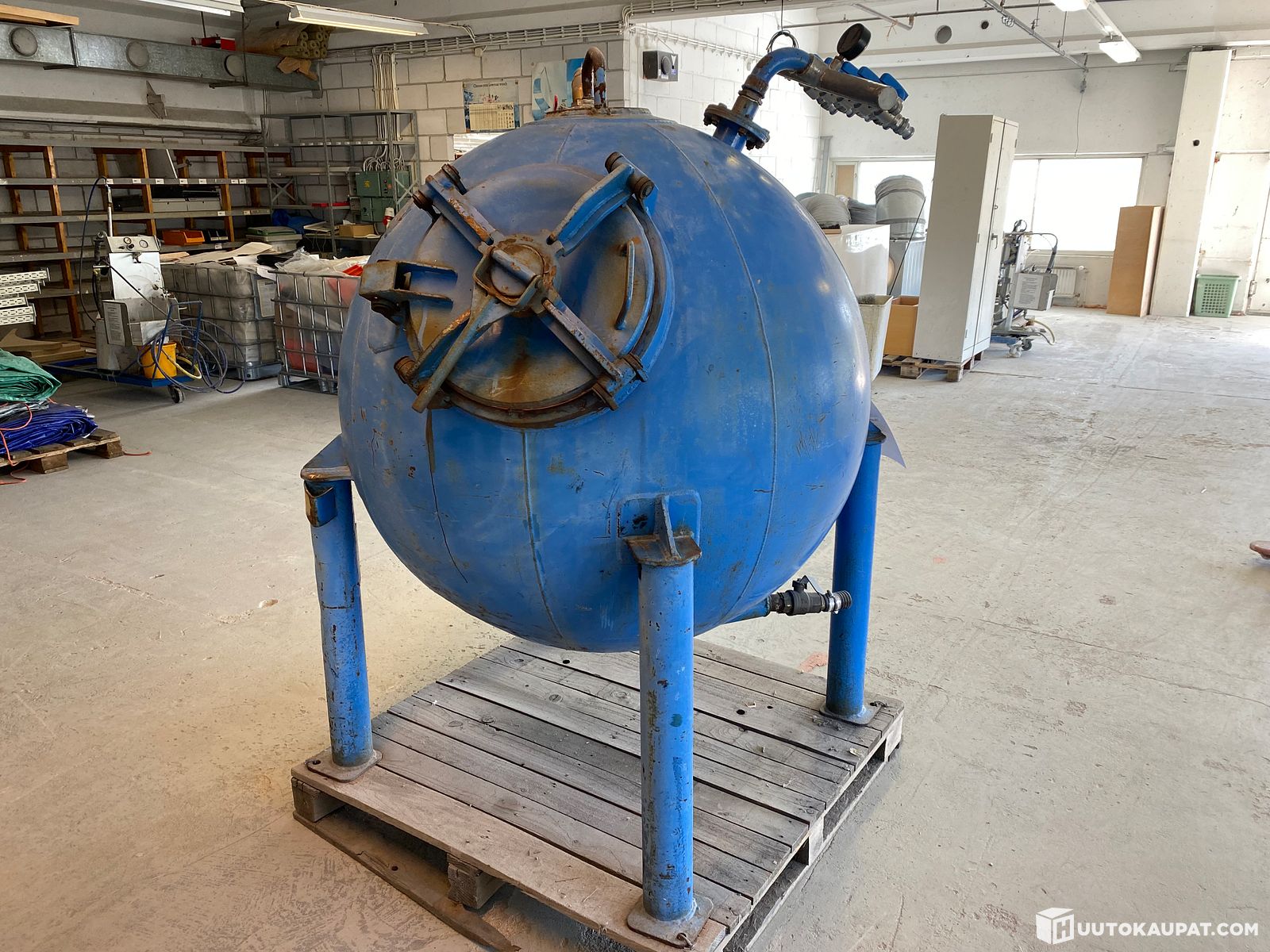 Teräksinen ympyrämuotoinen säiliö, 800 Litraa / 115 cm halkaisija / Stålcistern, klotformad, 800 liter, 115 cm diameter., Pedersöre