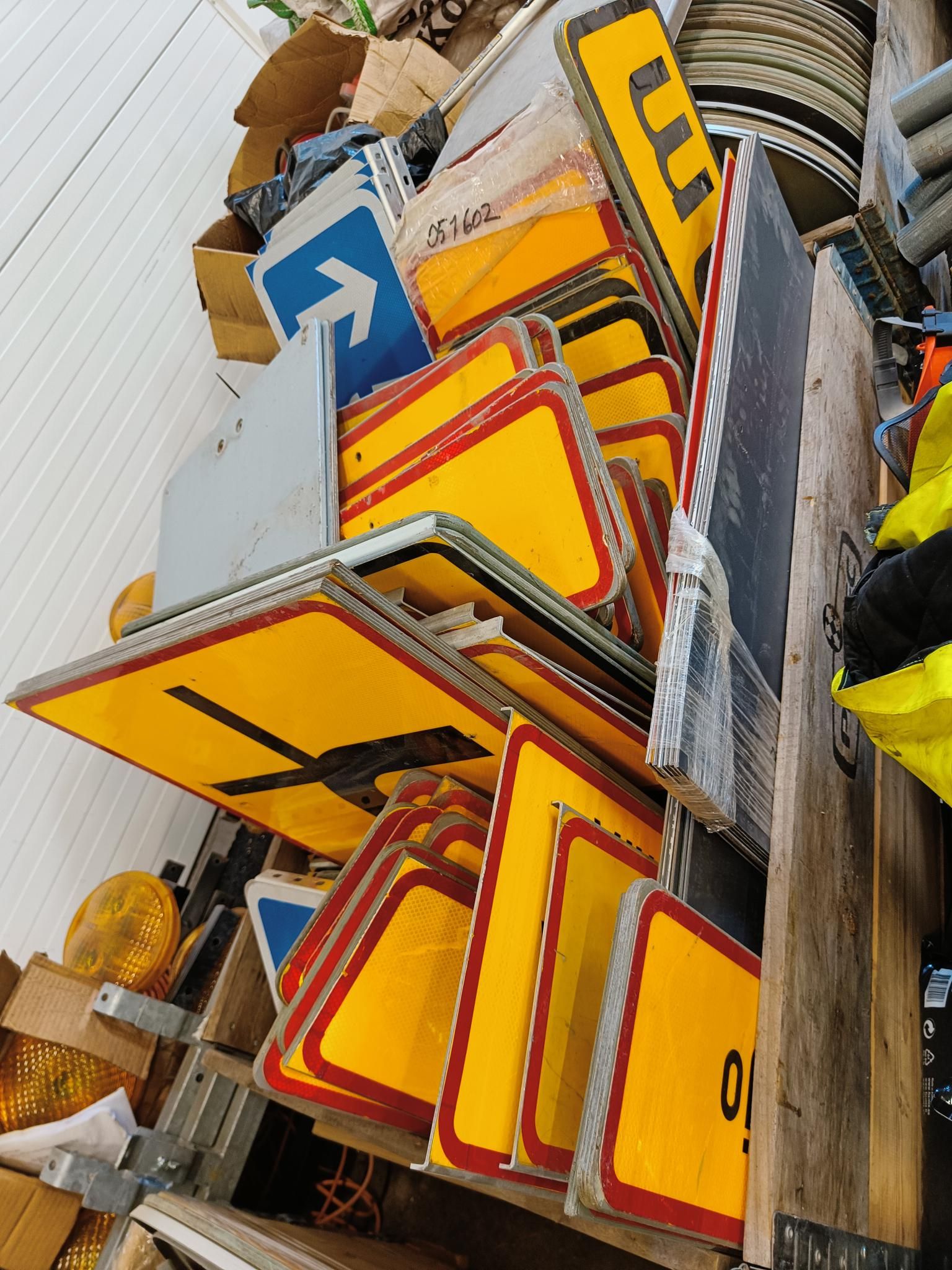 Käytettyjä liikennemerkkejä kiinnikkeineen ja putkineen, Lieto
