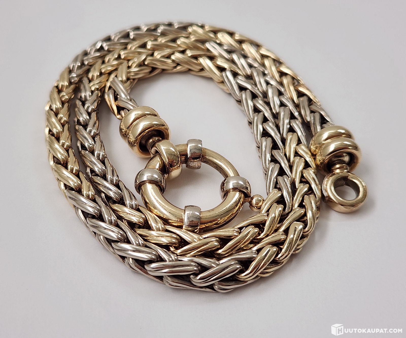 Kultainen kaksivärinen (kelta-/valkokulta) Spiga-kaulaketju 33,1g / 14k, Isokyrö
