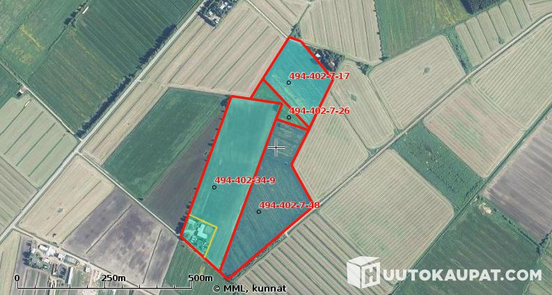 Ulosmitattu määräalan ja kolmen peltokiinteistön kokonaisuus noin 14,5ha Muhoksella / Utmätt oubrutna områden och tre åkerfastigheter tillsammans ca 14,5ha i, Muhos