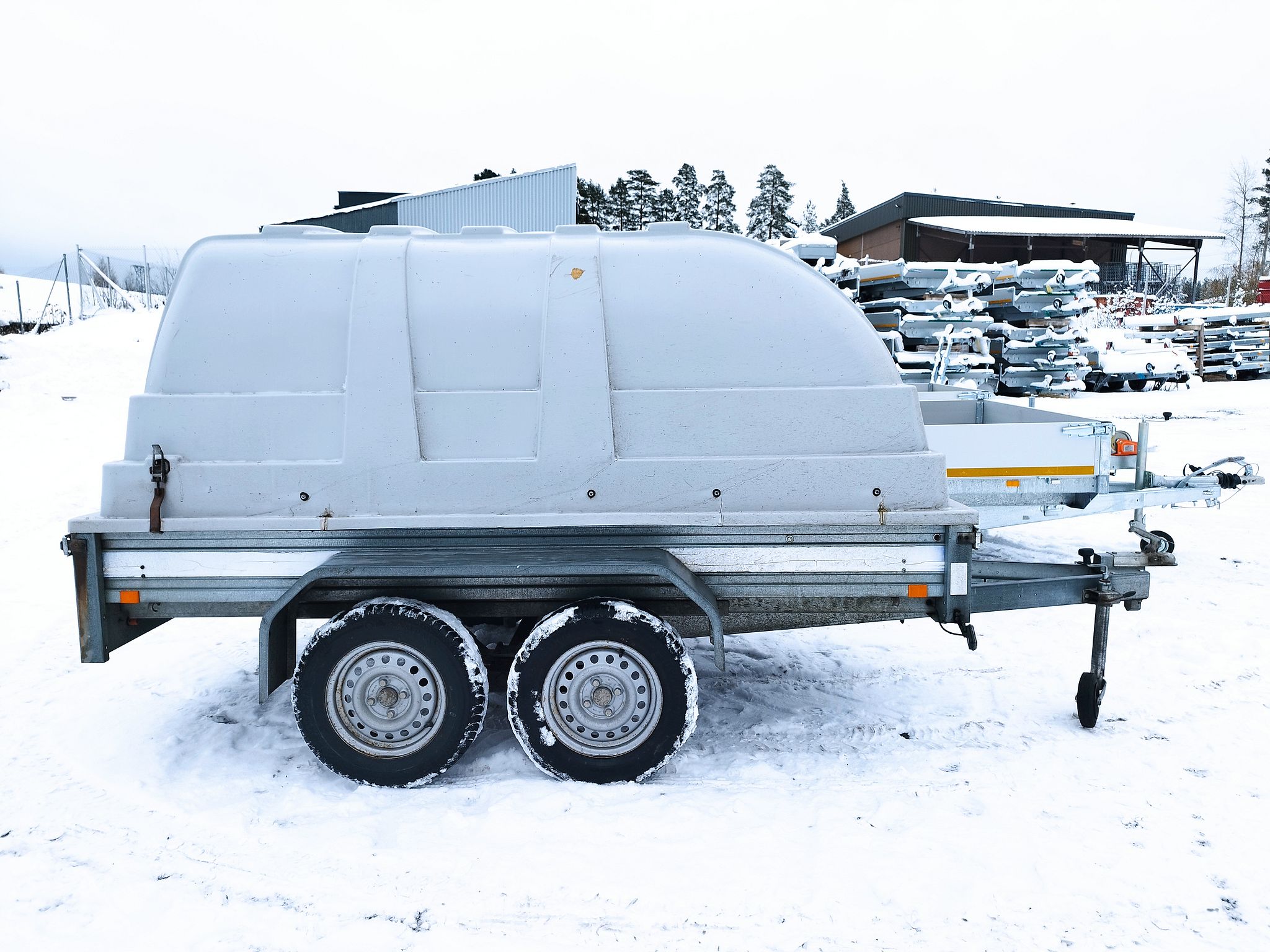 Käytetty Aku teliperäkärry kuomulla, lava 278x140x23cm, Ylöjärvi