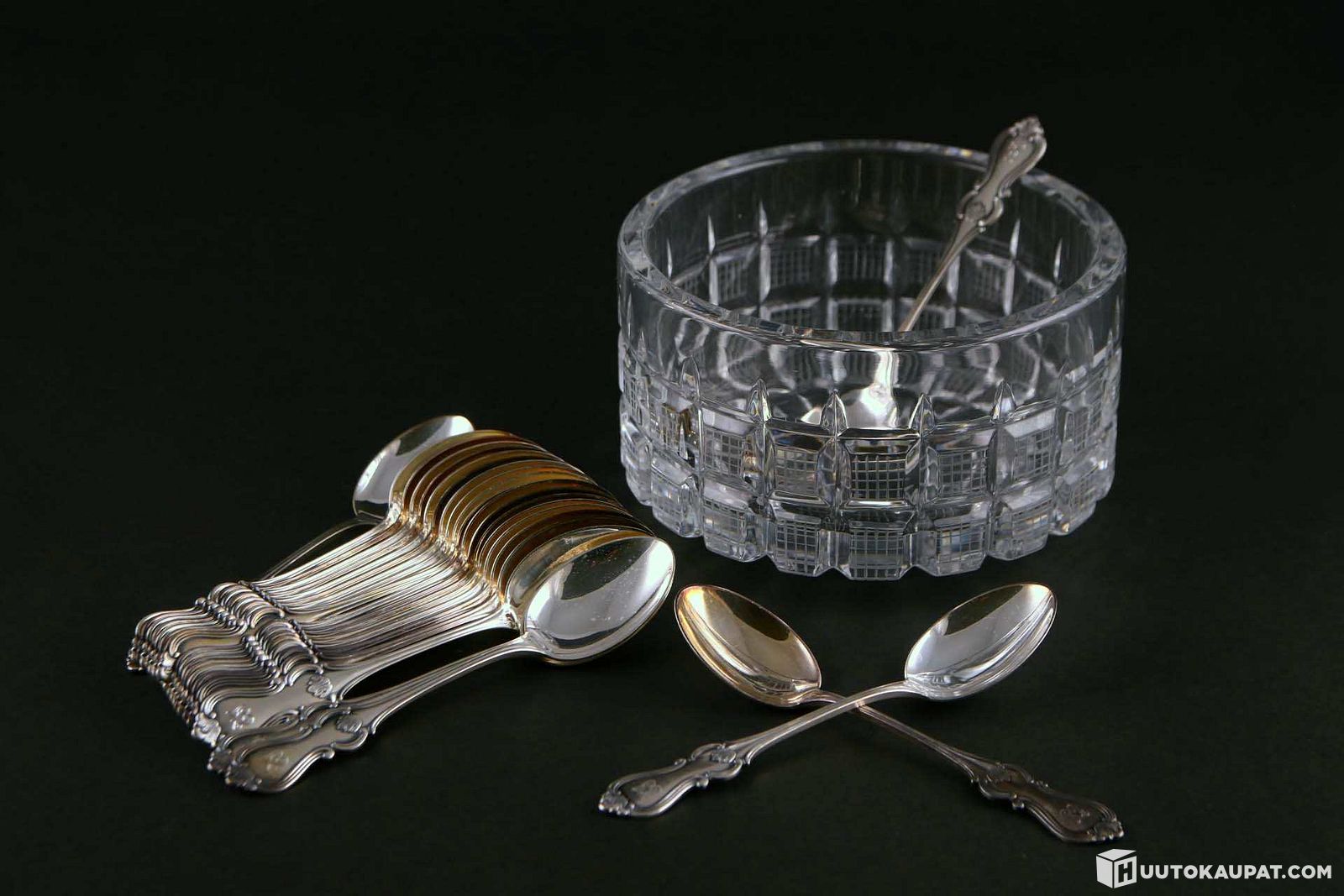 Kristallikulho ja Kultakeskus Romantica-lusikoita 24 kpl. KRT5426, Riihimäki