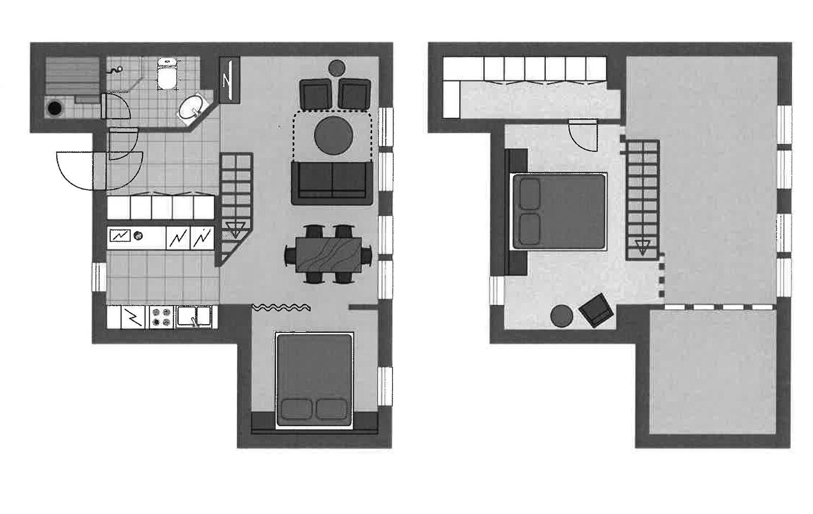 Huoneistoselitelmä: Olohuone, makuuhuone, sauna ja parvella huone