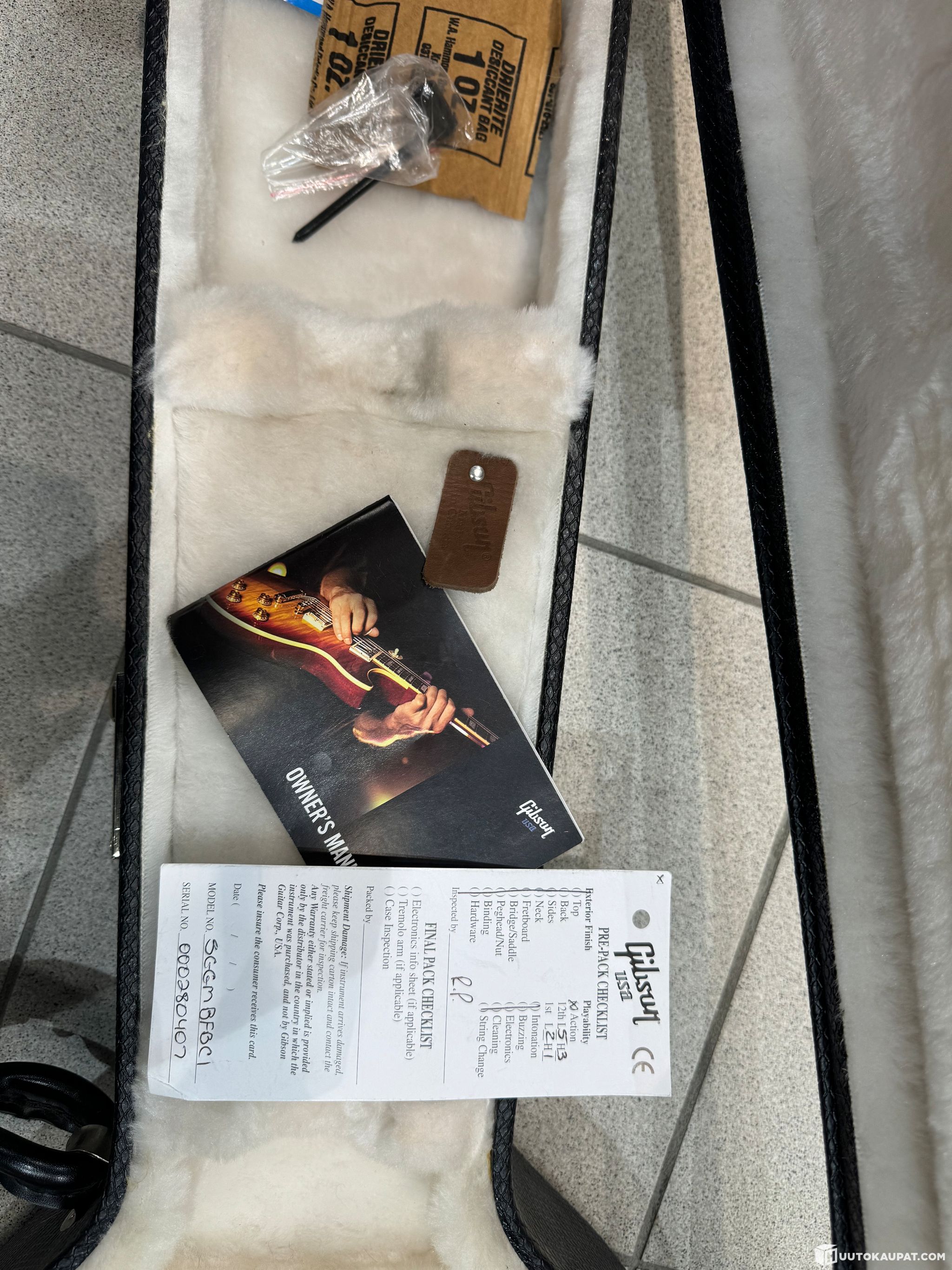 Aitoustodistus mukana sekä Gibsonin kovakantinen laukku