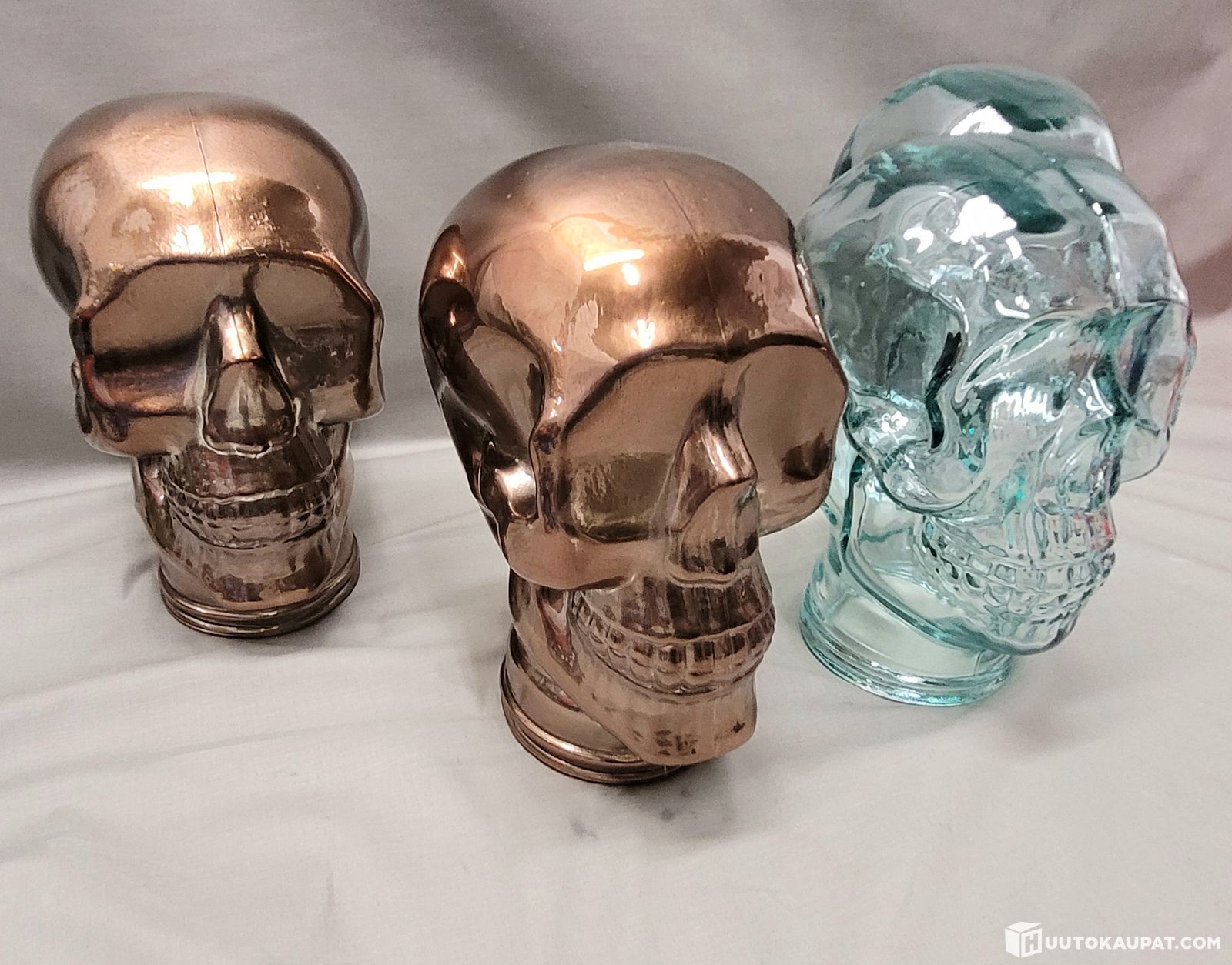 4kpl lasisia pääkalloja - vahvaa lasia,avonaiset sisustat 2kpl kupari, 2kpl kirkas, Isokyrö