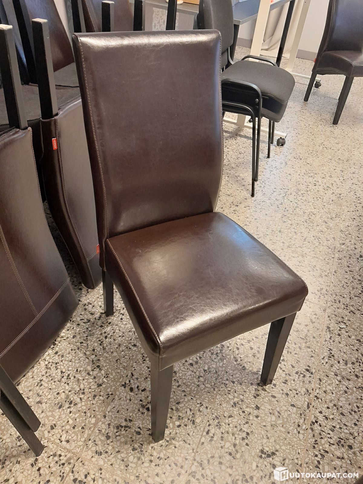 Ruskea nahkatuoli / ruokaryhmän tuoli, Petäjävesi