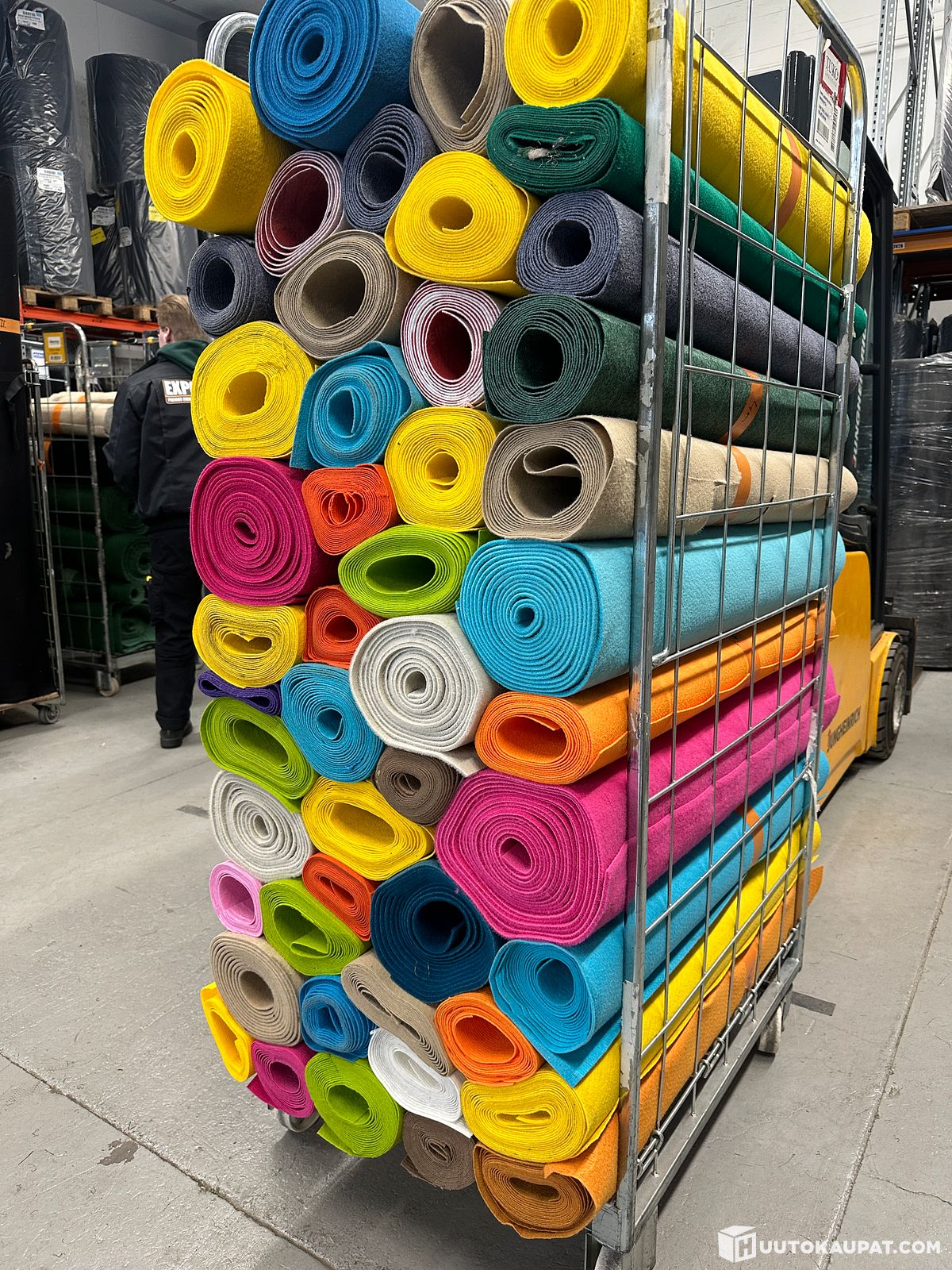 Megaerä 1 m leveää käytettyä värikästä messumattoa rullakollinen., Ylöjärvi