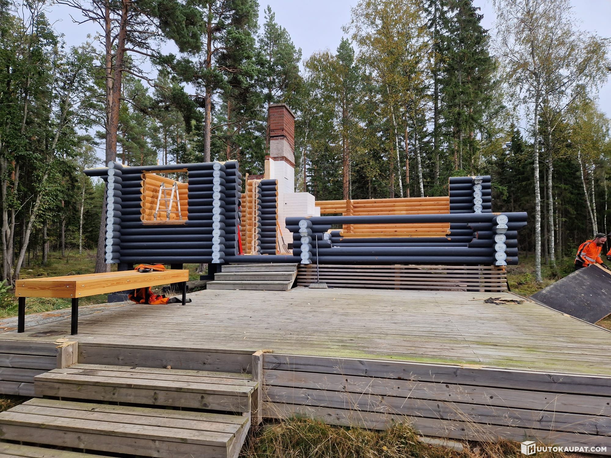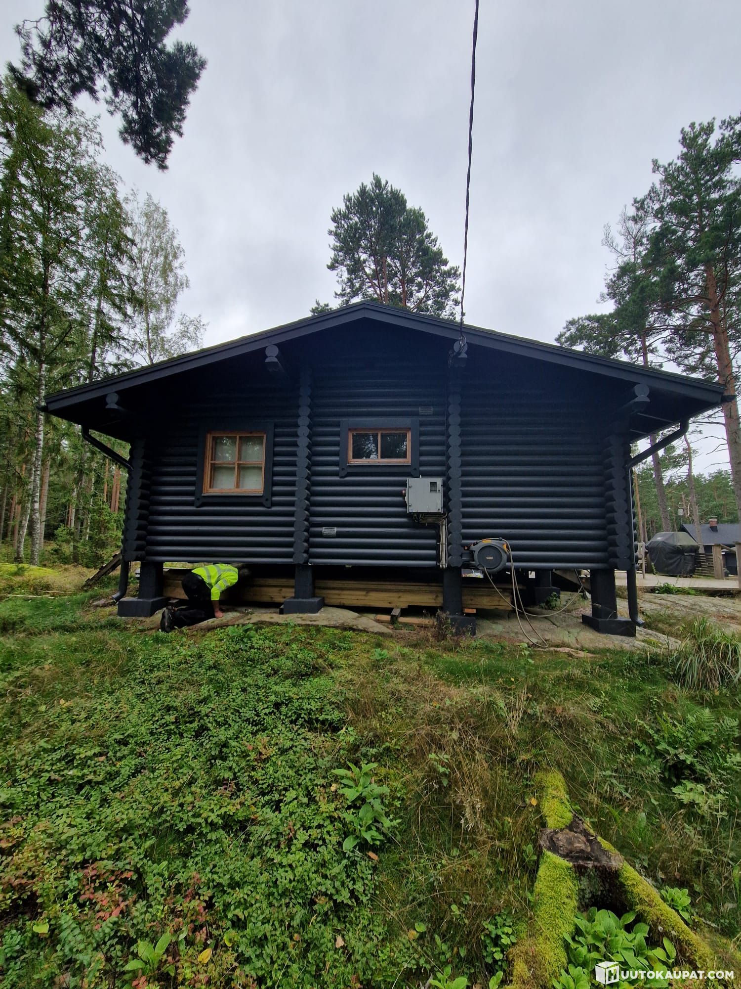 Mökki on purettu 2023 syksyllä ja runko on tapuloitu katon alle. Kuvat on otettu purkuhetkellä.