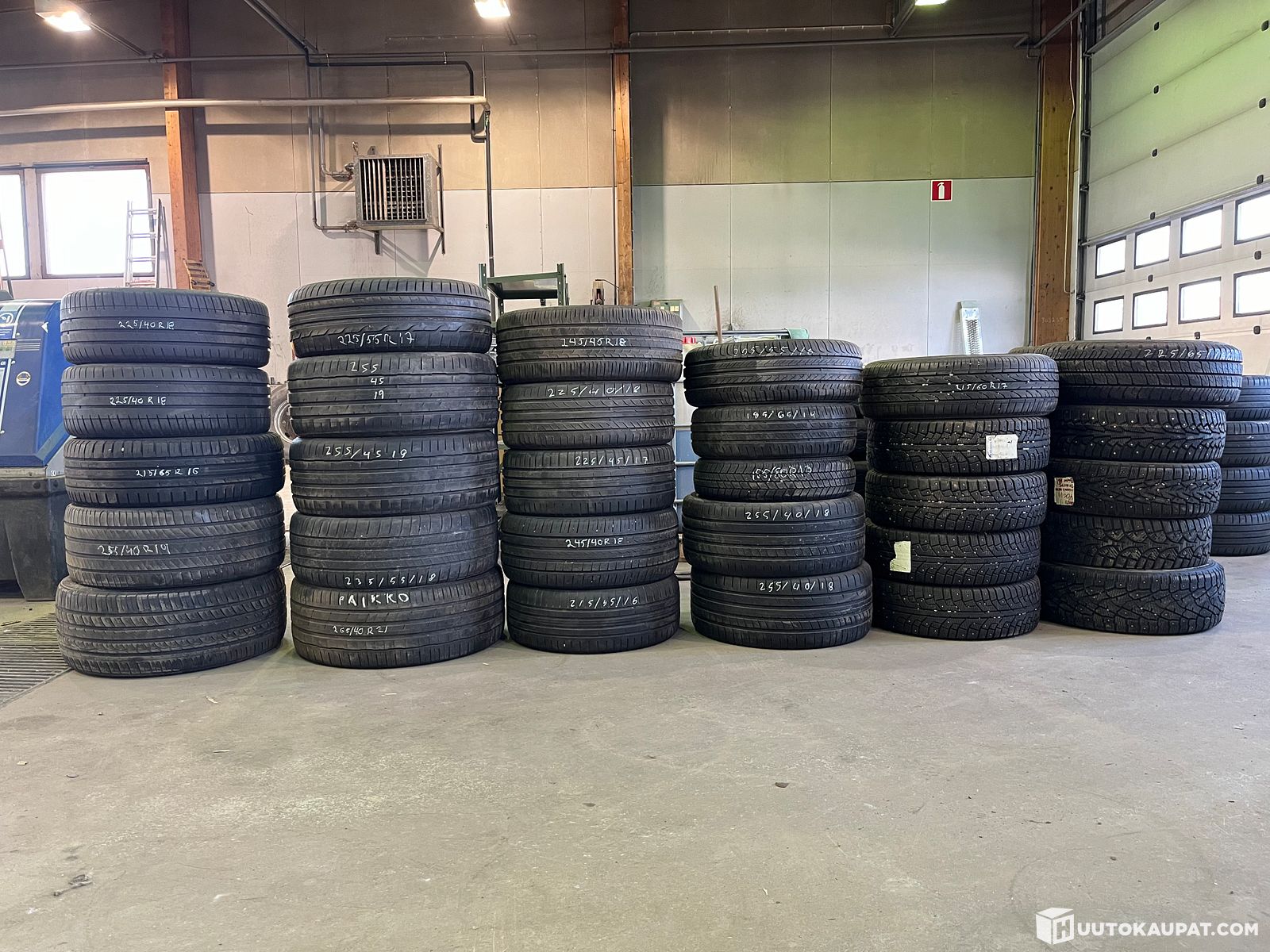Rengasliikkeen varaston siivous, käytettyjä renkaita, Seinäjoki