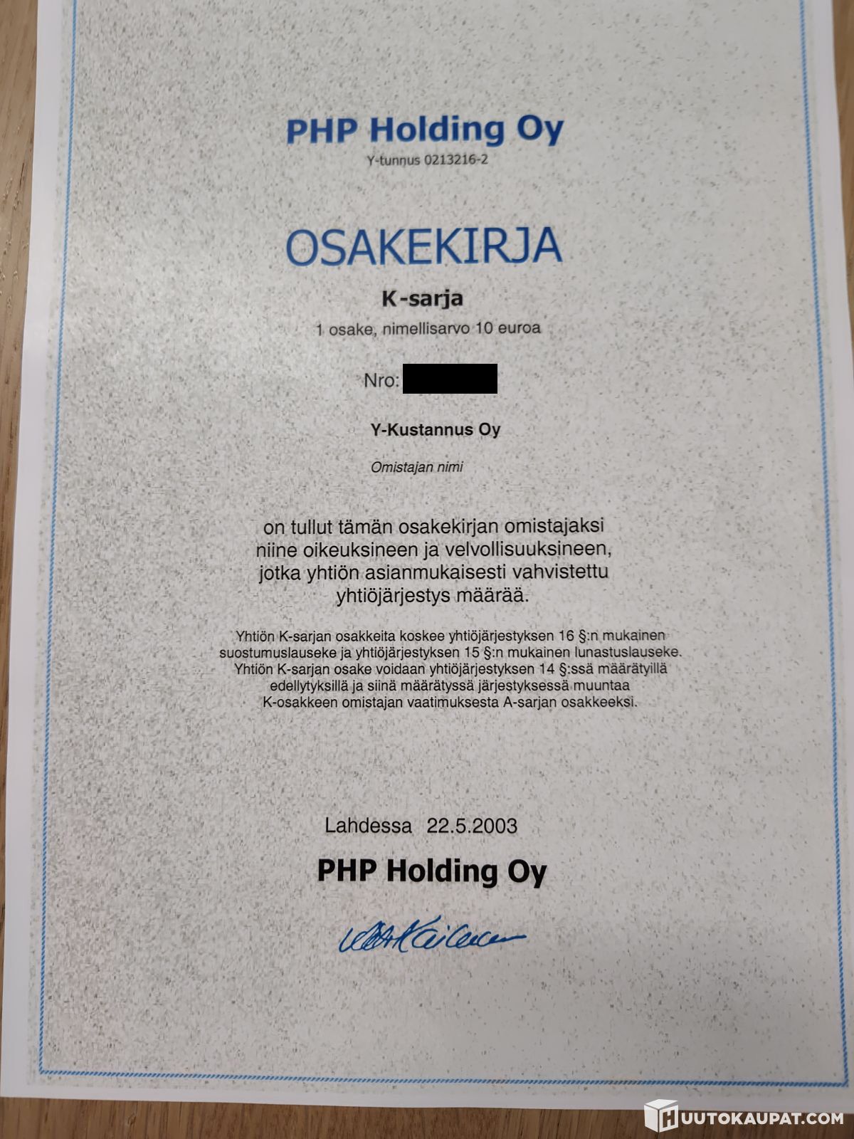 PHP Holding Oy - osakepari A + K, Lahti