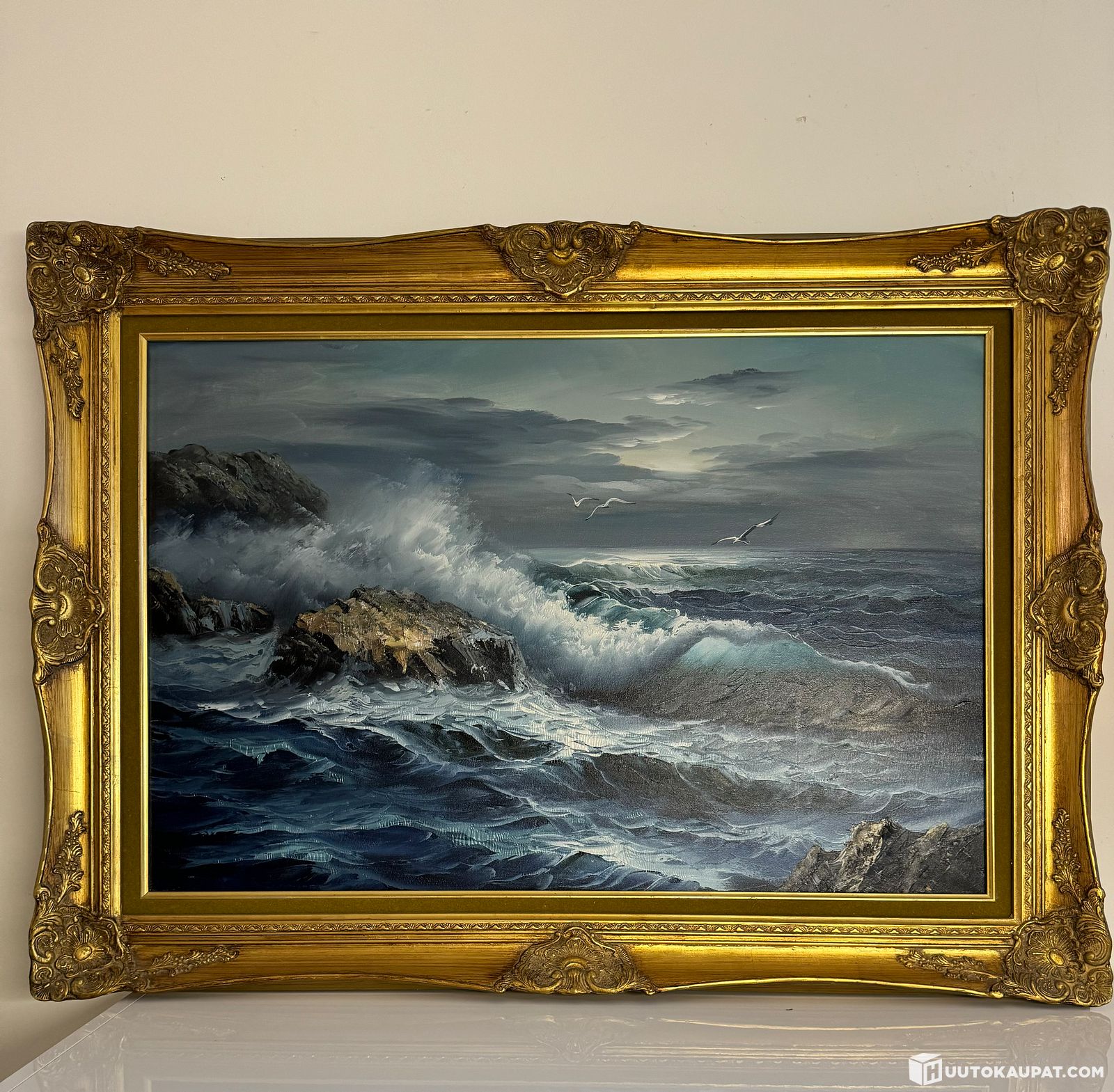 Huikea iso meritaulu sign. S.Gelman öljyvärimaalaus, Lohja