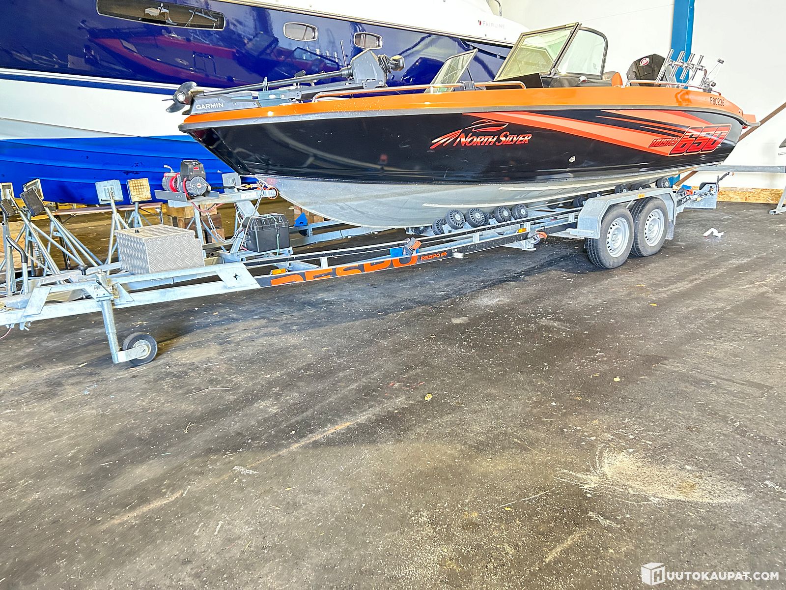 Todella mahtava kalamiehen unelma NorthSilver Husky 650 SF Mercury 250 Pro XS Venetraileri Respo 2 akselinen, Inkoo