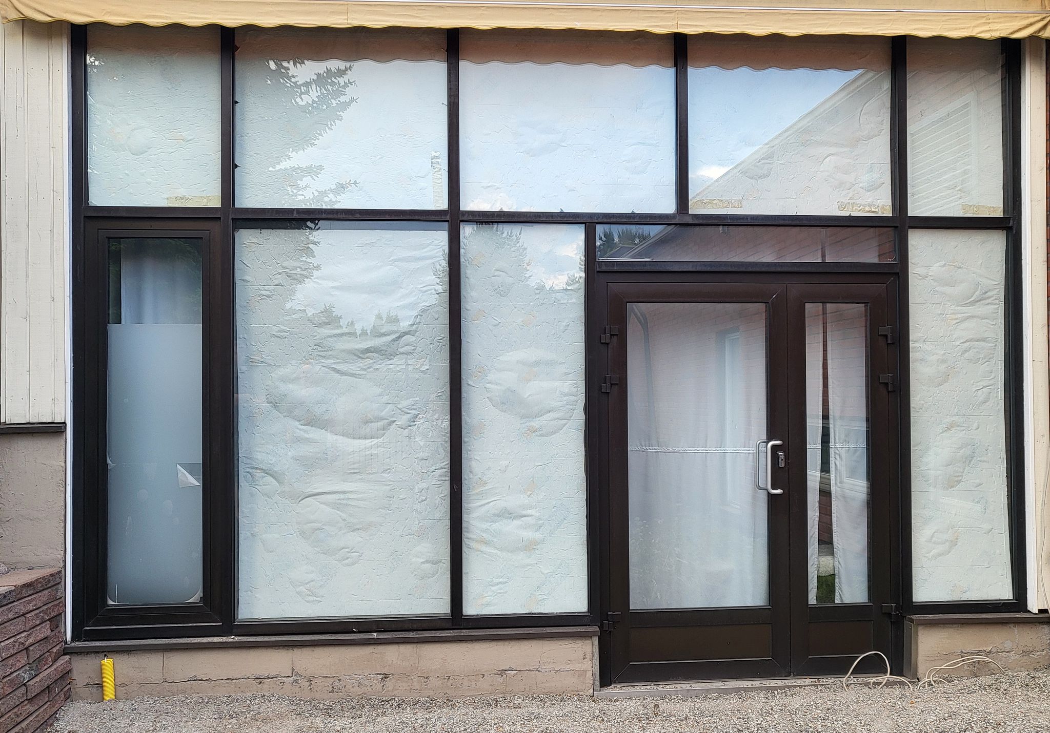 Lasiseinä ovella ja tuuletusikkunalla. Leveys 4815mm x korkeus 3185mm, Kangasala