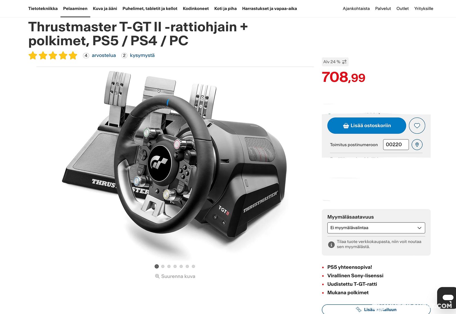Thrustmaster T-GT-II rattiohjain + polkimet, Kotka