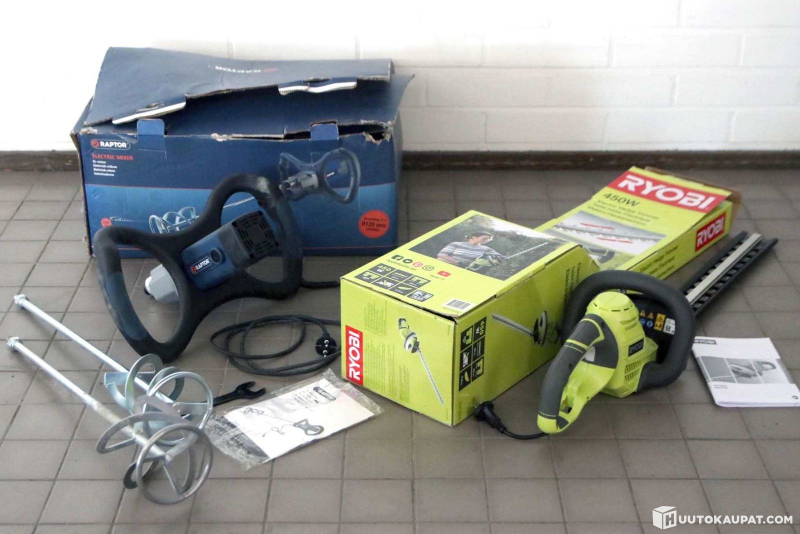 Raptor DT-818630-sekoituskone ja Ryobi RHT4550-pensasleikkuri. K225, Espoo