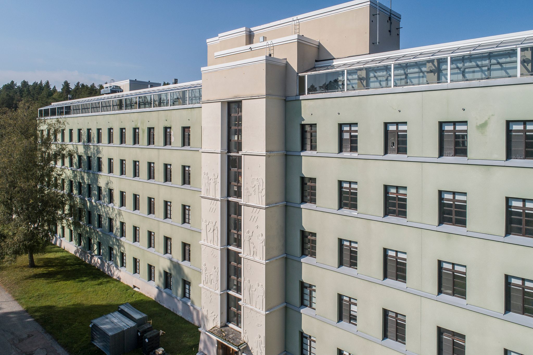 Julkisivun kohokuvat / reliefit, Kinkomaan sairaala, Vitapolis, Muurame
