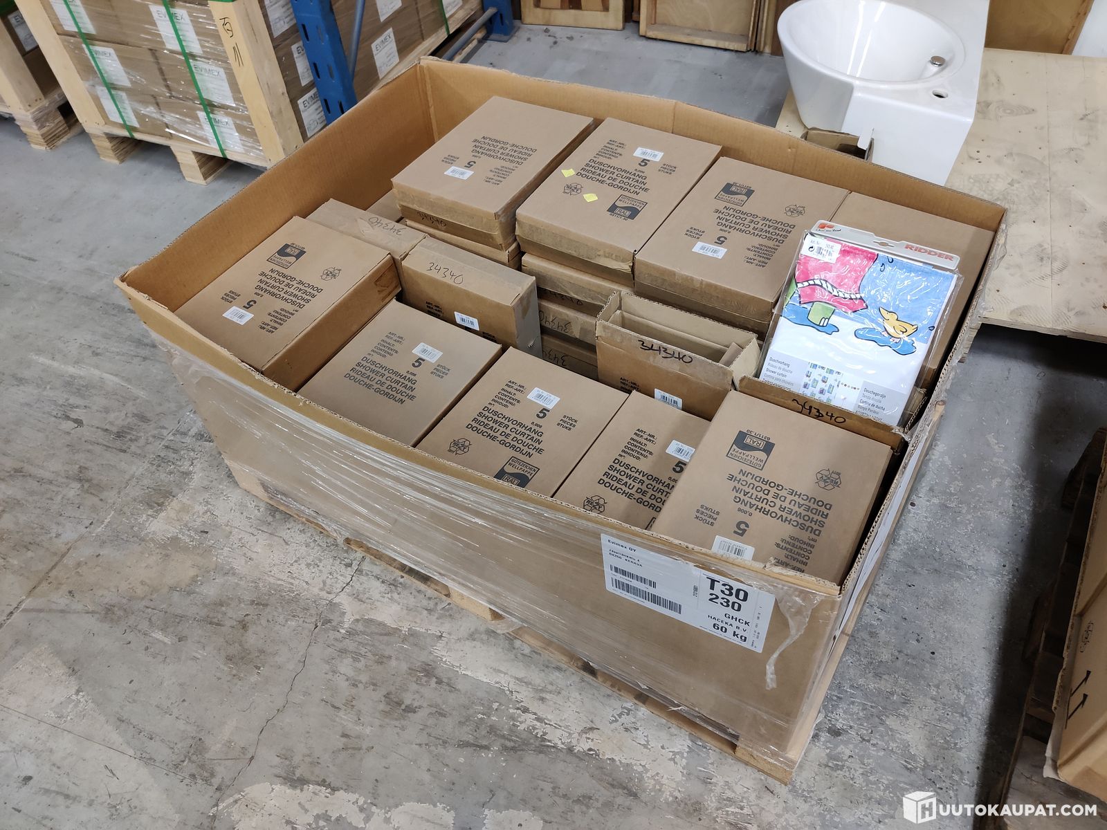 suihkuverhoja (erä 22) Evimex Oy konkurssipesä 3458034-9, Espoo