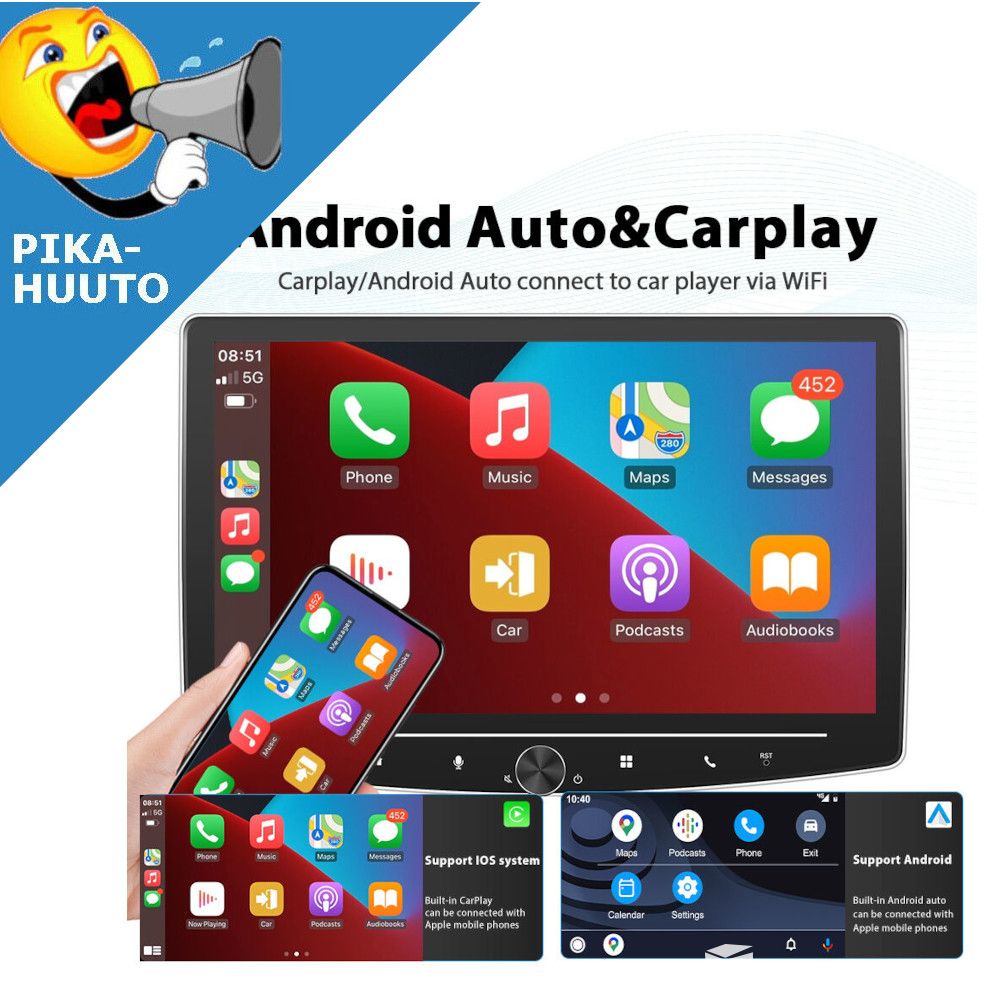 PIKAHUUTO: 1 DIN 10.1" 2+64GB Android Autosoitin pyörivällä näytöllä, Hämeenlinna