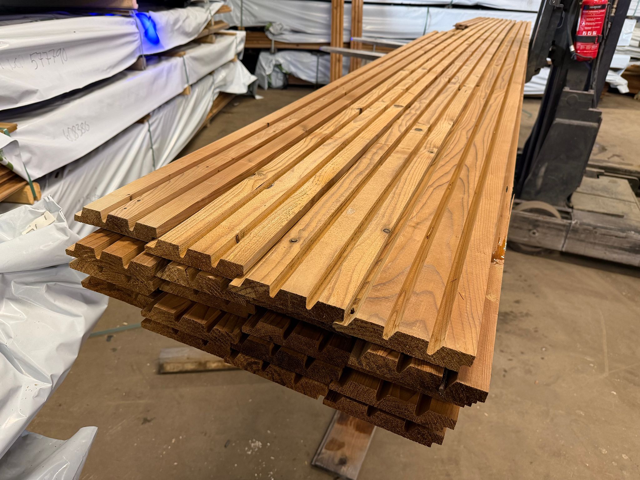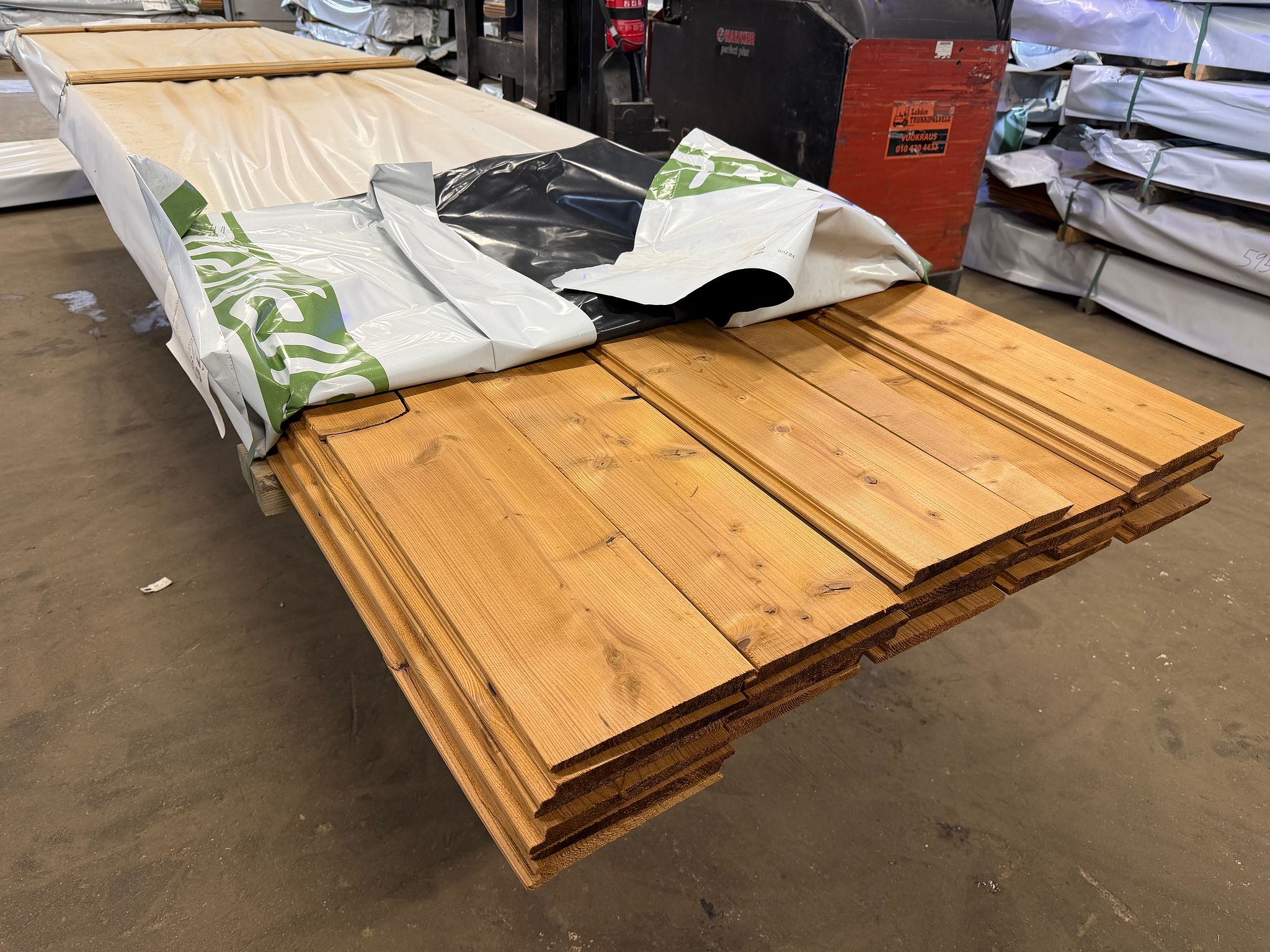 Katoksen sivuseinän sisäpuolen ulkoverhouspaneelit ja päätykolmioiden ulkoverhouspaneelit sekä palkin ulkoverhous (pohjamaalattu vaalean harmaa) sisältyvät irtotavarana mukaan pakettiin.