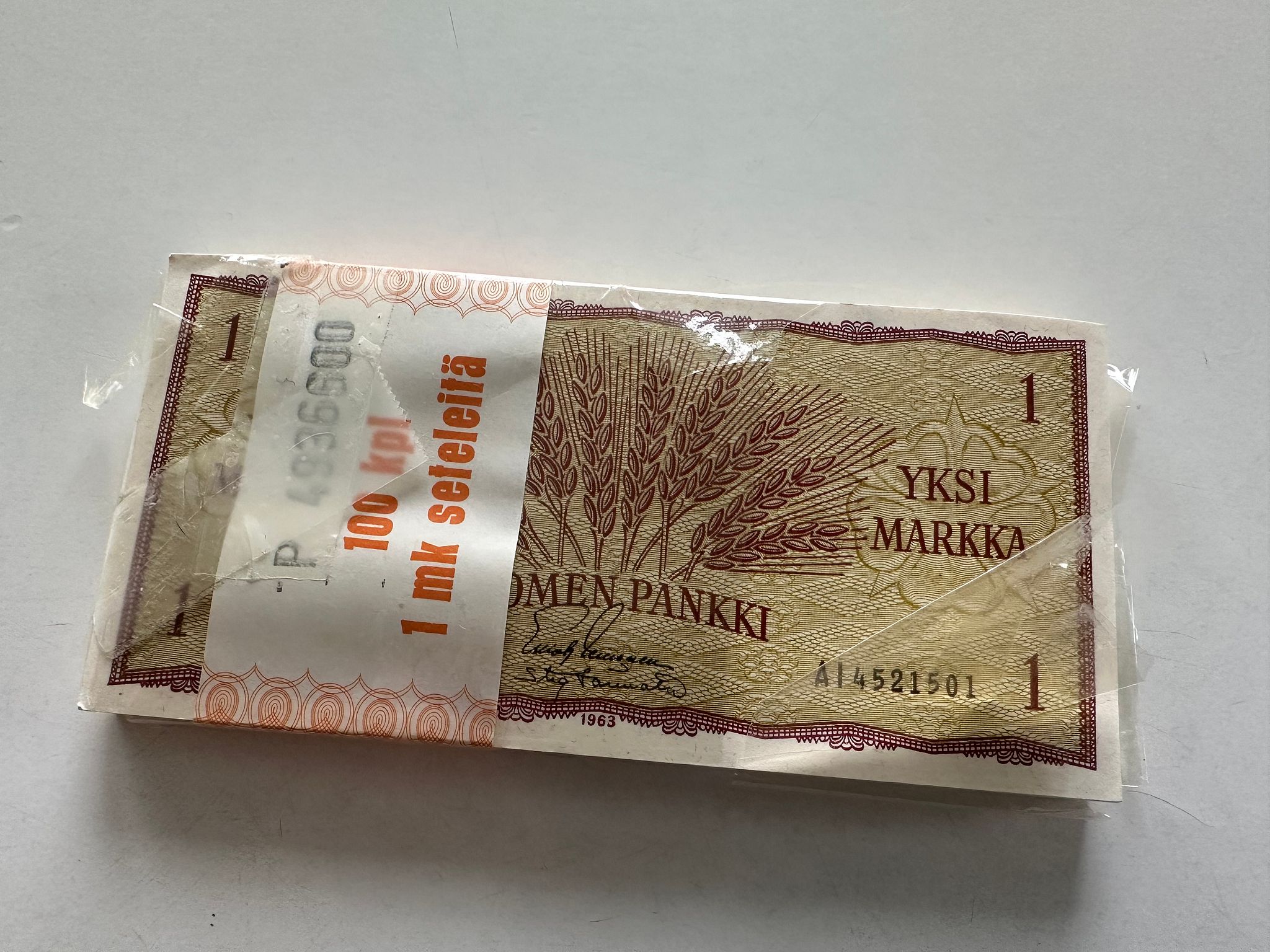 Setelinippu, 100kpl markan seteleitä vuodelta 1963, Lapinlahti
