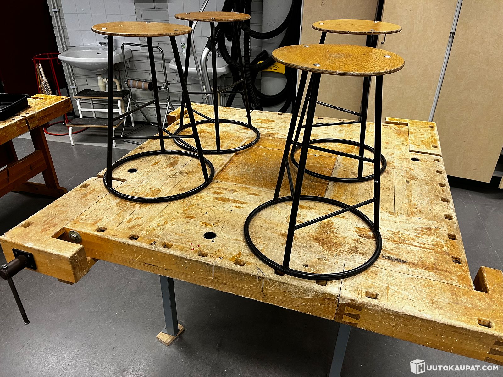 Puutyöpenkki ja 4 jakkaraa ERÄ T21, Uusikaupunki