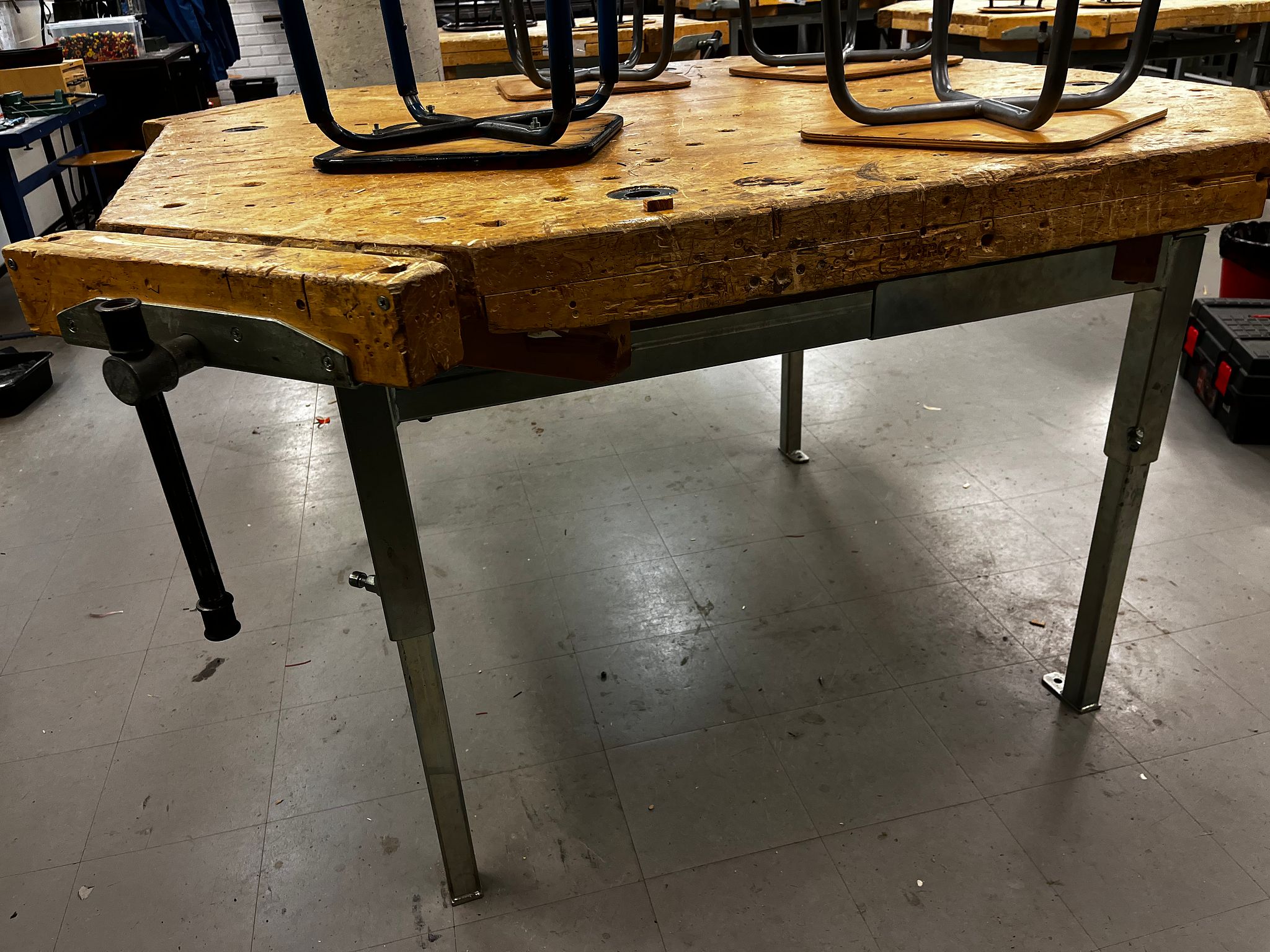 Puutyöpenkki ja 4 jakkaraa ERÄ T27, Uusikaupunki