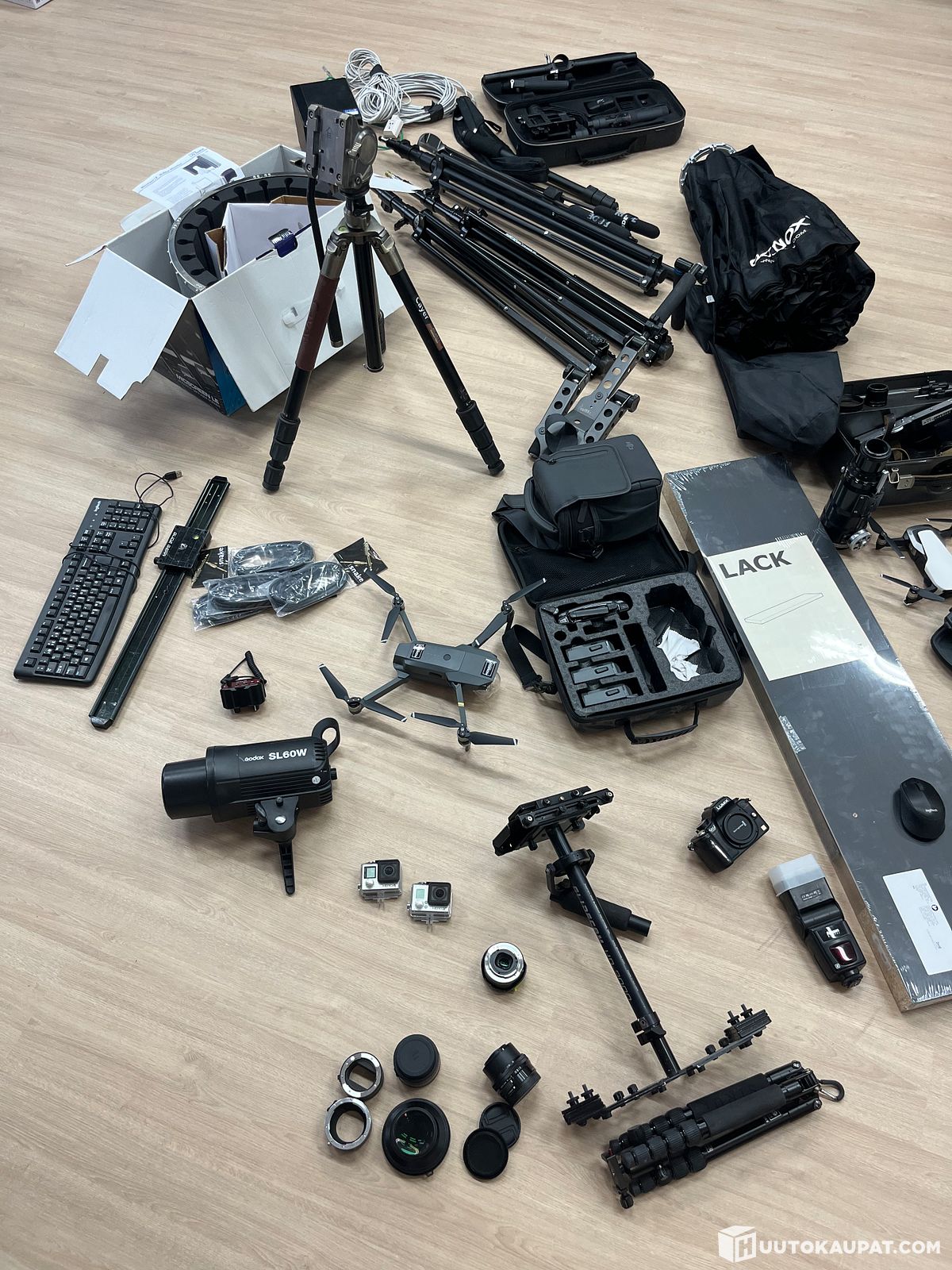 Droneja, kuvausvalo, jalustoja ja muuta kuvauskalustoa - Varastontyhjennys, Tampere