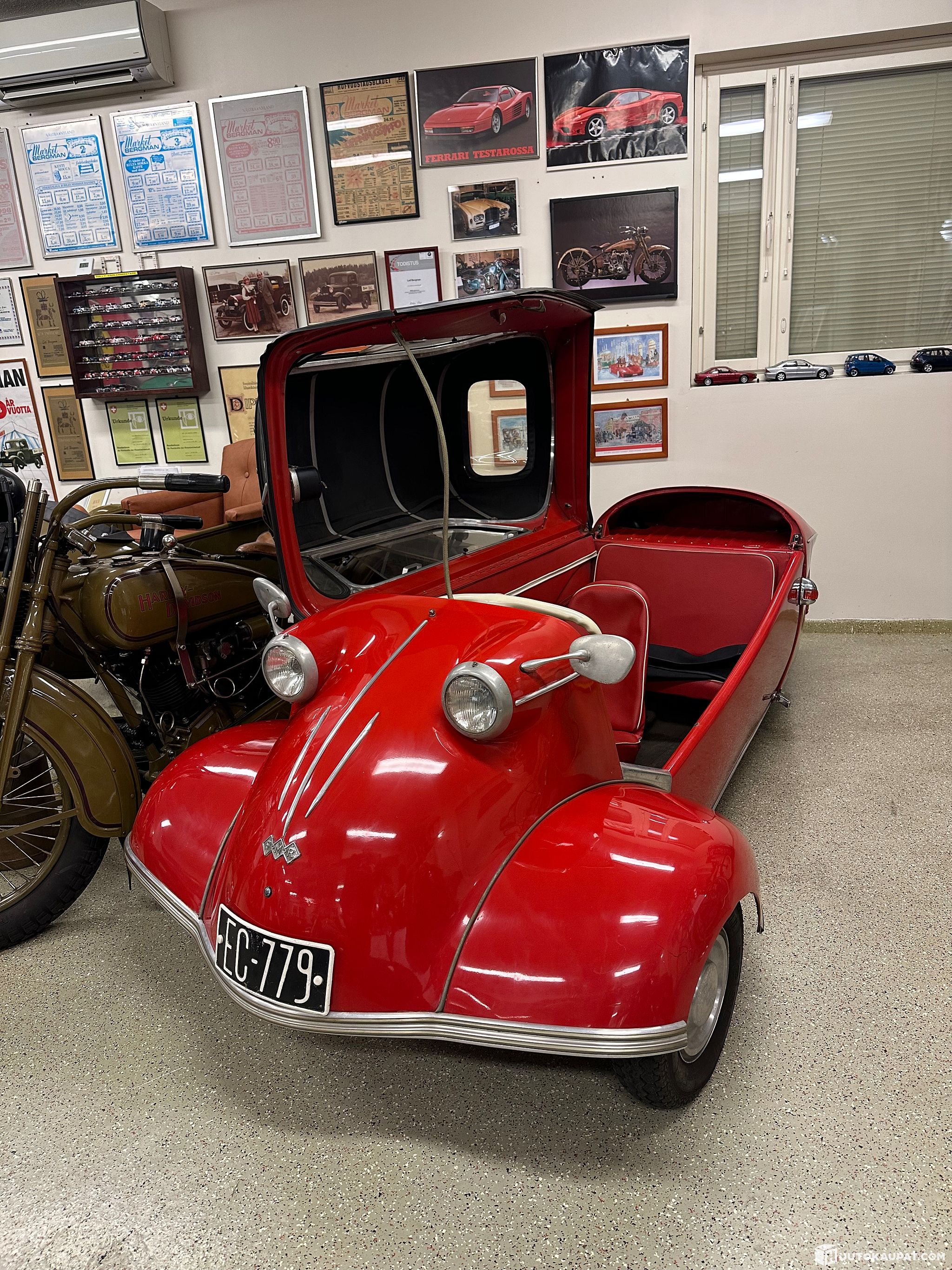 Nyt myynnissä harvinainen ja ikoninen Messerschmitt KR200 vuodelta 1961! Tämä ainutlaatuinen kolmipyöräinen ajoneuvo on tunnettu futuristisesta muotoilustaan, keveydestään ja ajamisen hauskuudesta.