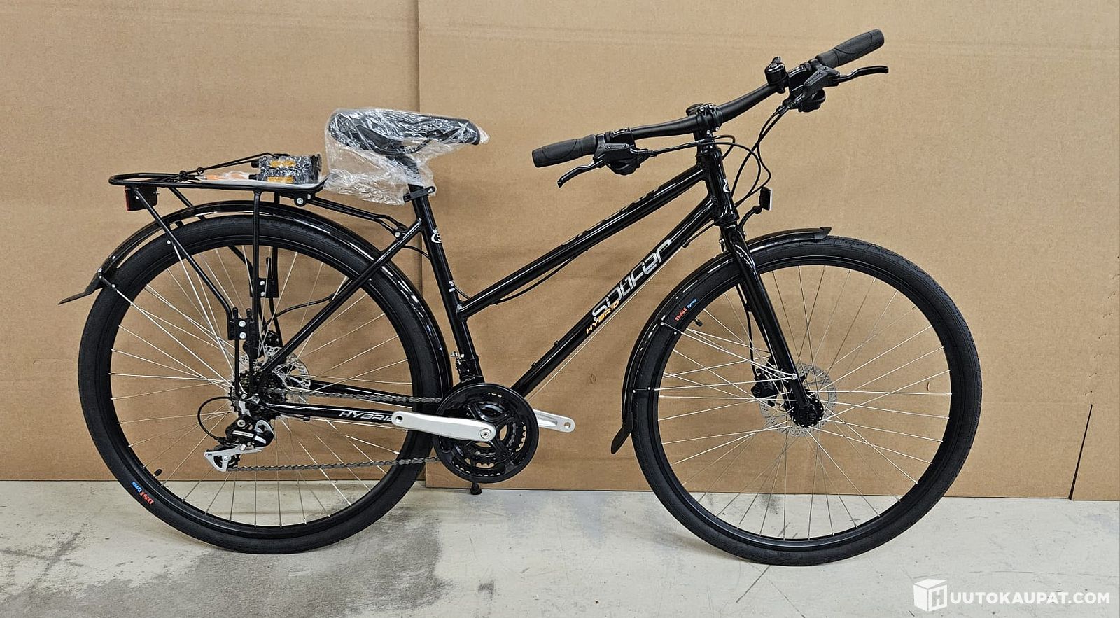 2kpl Käyttämätön Solifer Hybridi 28" 21-v naisten musta polkupyörä nestelevyjarruilla 48cm. SOLO-International oy konkurssipesä, Salo