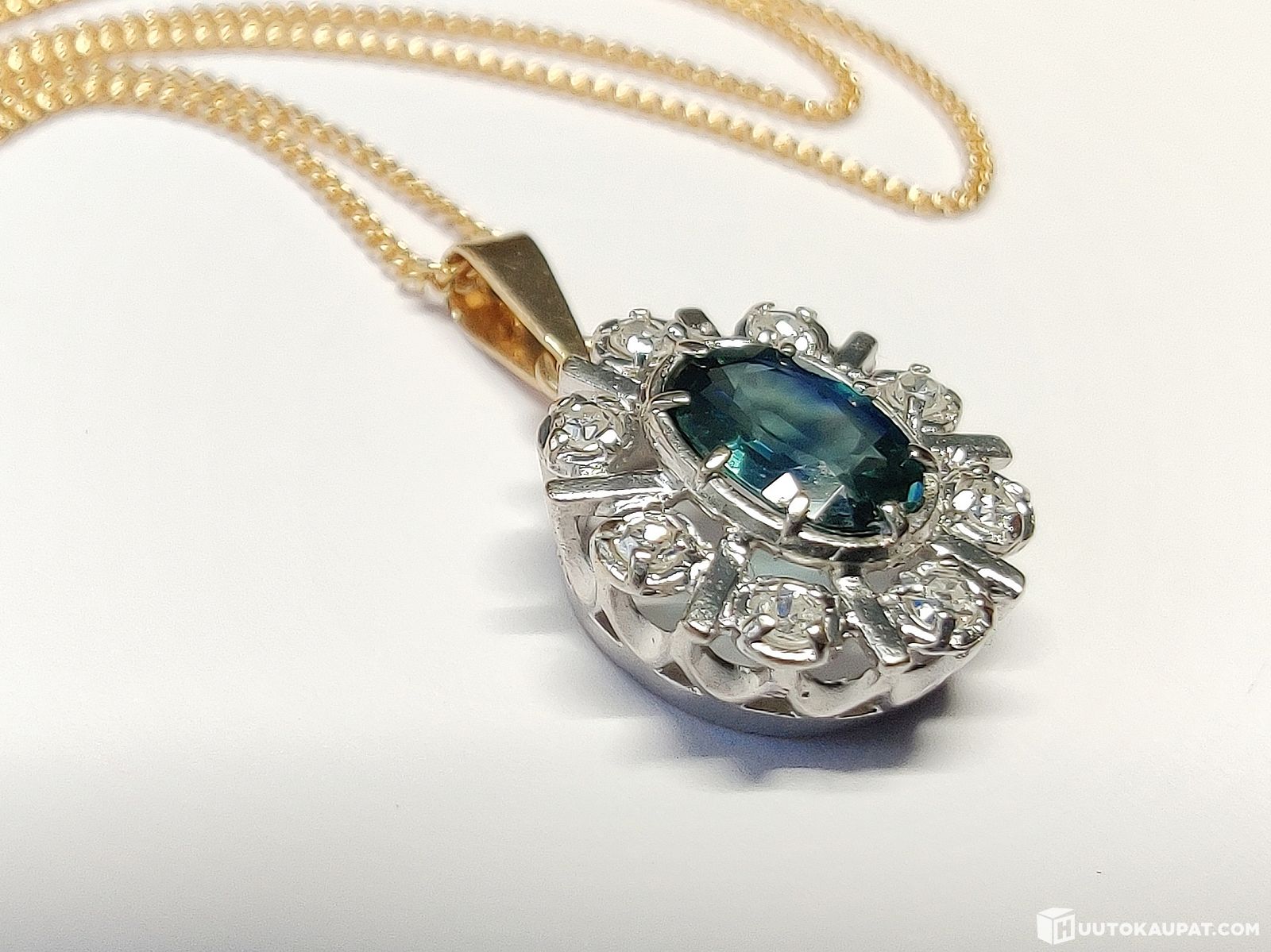 Kultainen timantti-safiirikaulakoru (Morris Lindblom & Co/Kellomiehet Oy) 585 14k, Mikkeli