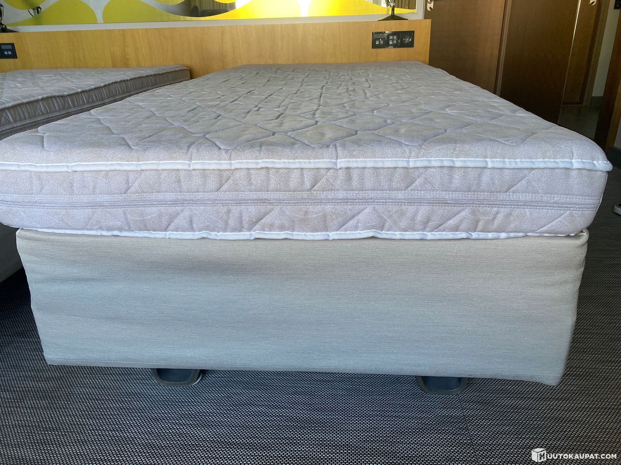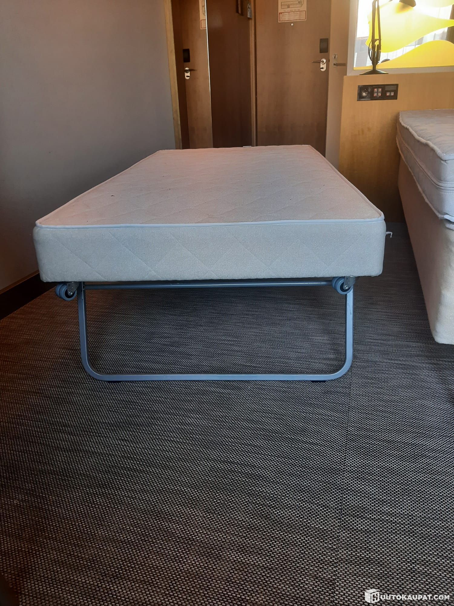 2 kpl Familon hotellisänky koko 90 x 210 cm jalkoineneen ja paksu petauspatja n. 15 cm paksu niihin koko 180 x 210 cm.