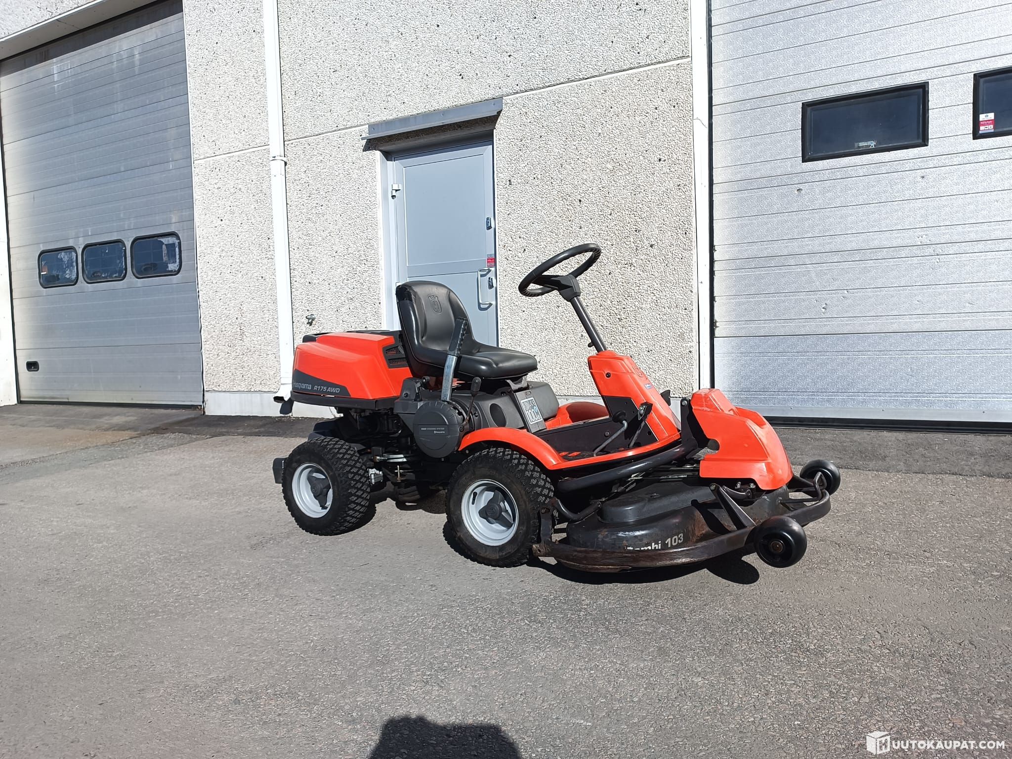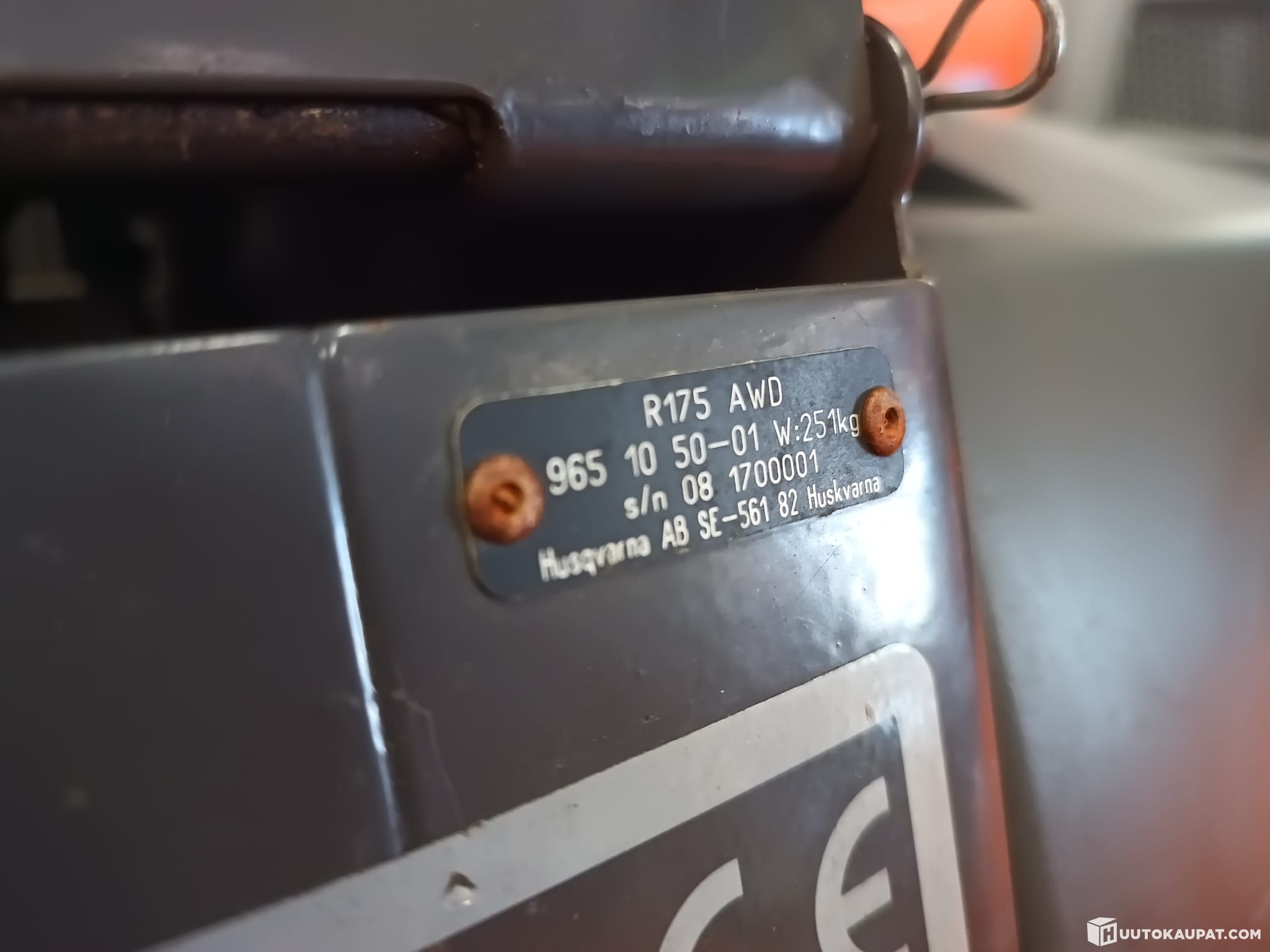 Tästä suoraan ajoon, jämäkkä neliveto Husqvarna R175 AWD etuleikkuri. Vuosimalli 2008.