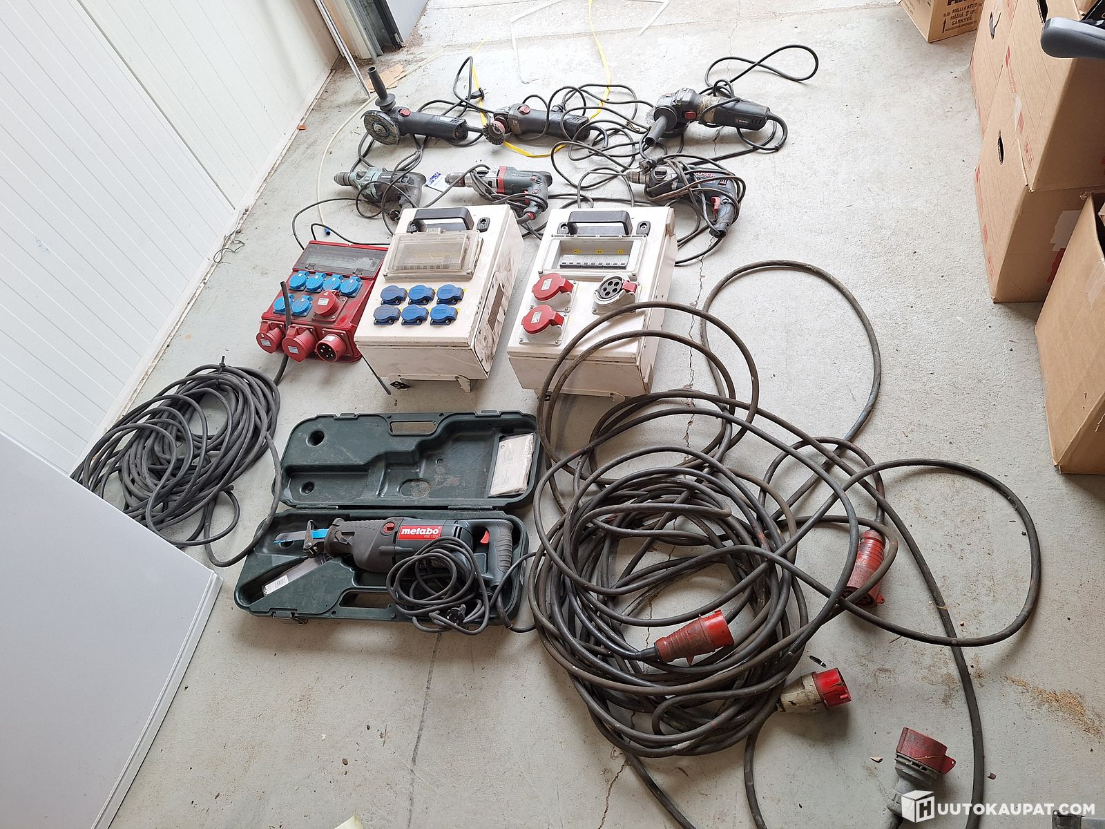 Erä sähkötyökaluja ja 3kpl työmaakeskusia + johtoa. Helsingin konttikeskus oy konkurssipesä, Järvenpää