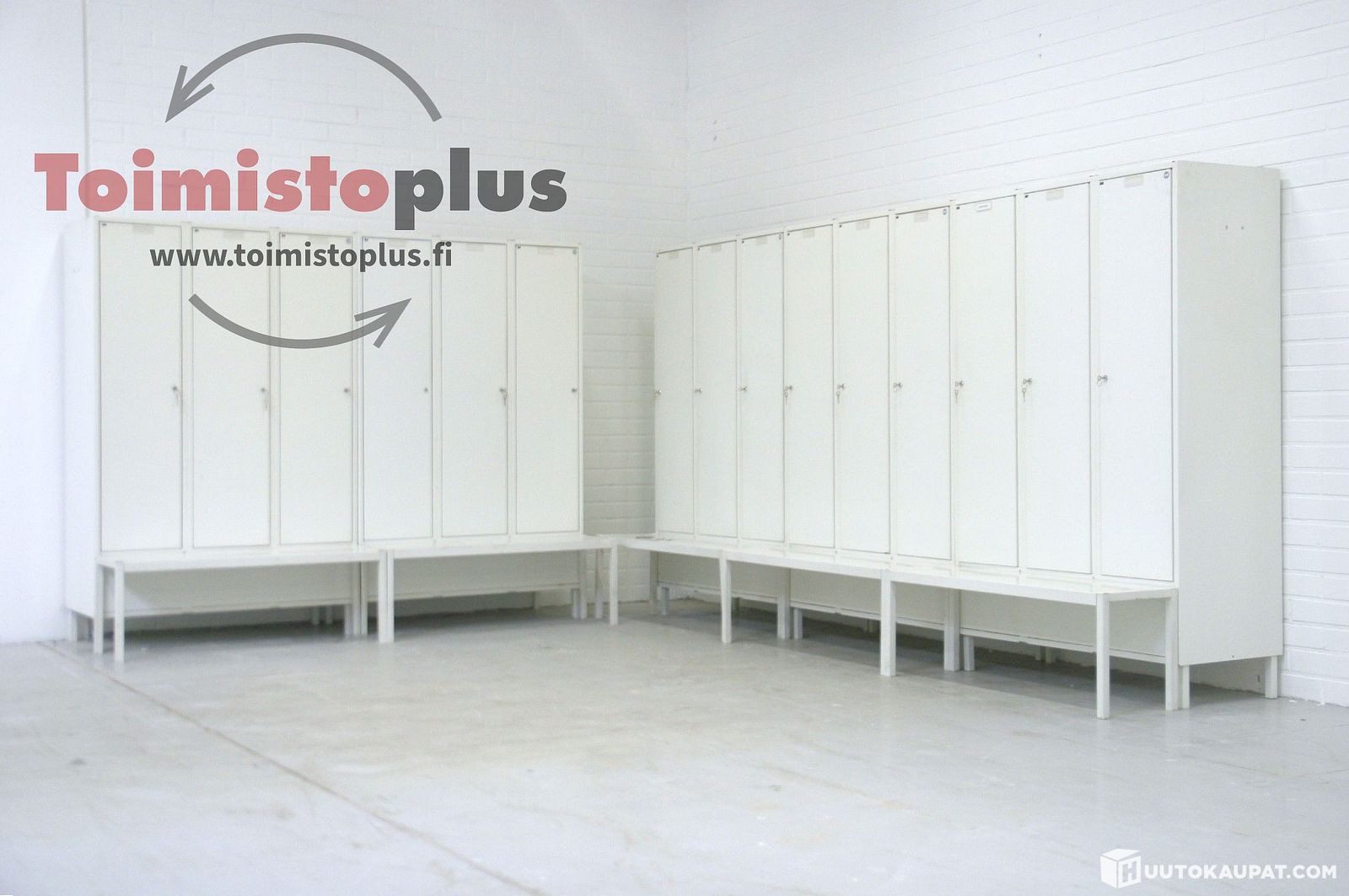 Peltisiä Turenko-pukukaappeja penkeillä 5 kpl (15 ovea). S722, Kerava