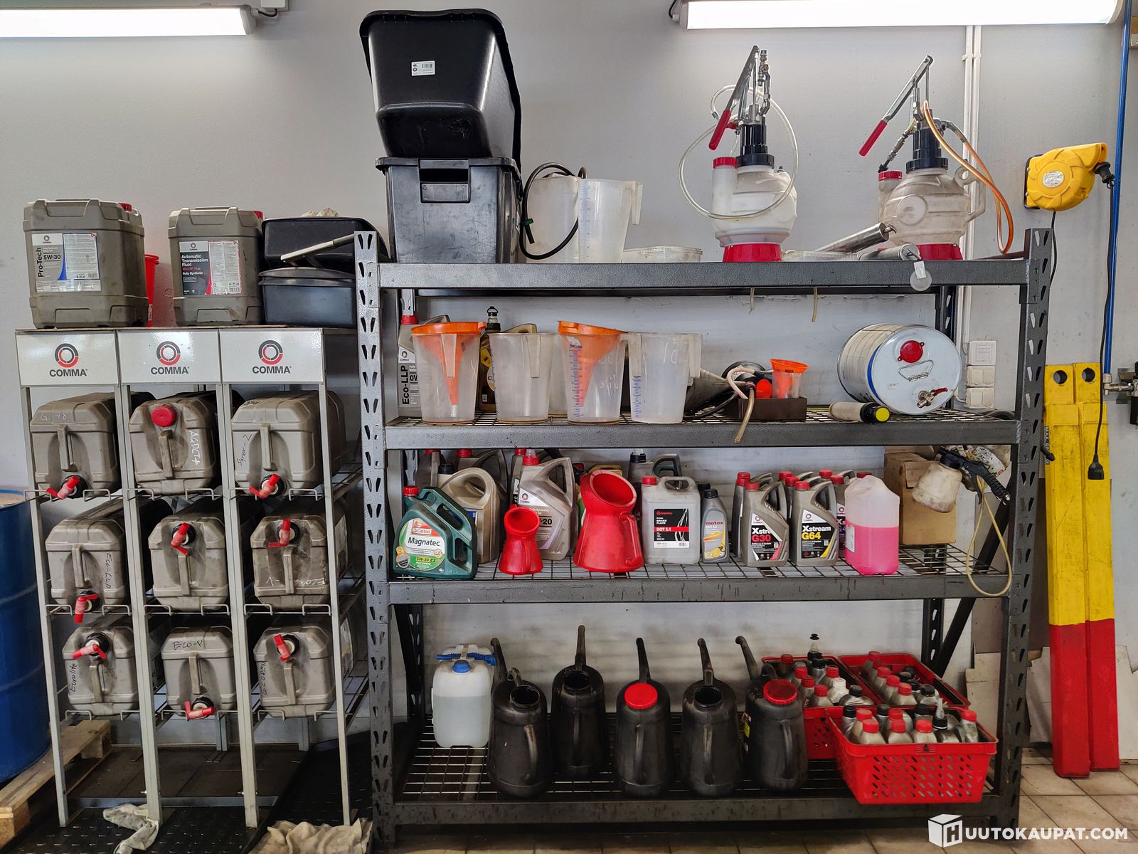Öljyä, autokemikaaleja, hyllyt (erä 15) Korjaamokeisarit Oy konkurssipesä 3529566-2, Espoo