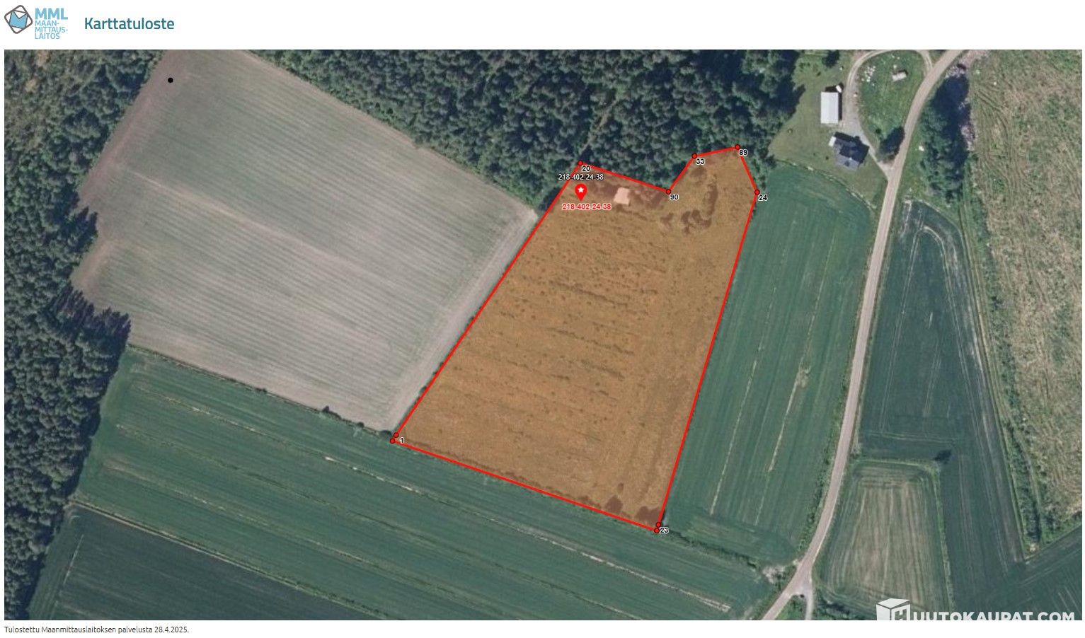 Ulosmitatut kiinteistöt (2 kpl, yht. 5,102 ha) rakennuksineen Pyhäniemessä, Hollola