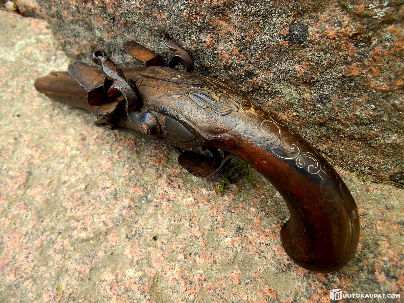 KULTAA !! UPEA 2-piippuinen Piilukkopistooli ! Suustaladattava pistooli ase 1700-luku !!, Vehmaa