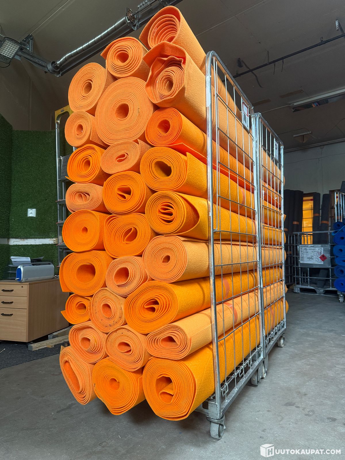 Megaerä 2 m leveää käytettyä paksua oranssia messumattoa tuplarullakollinen, Ylöjärvi