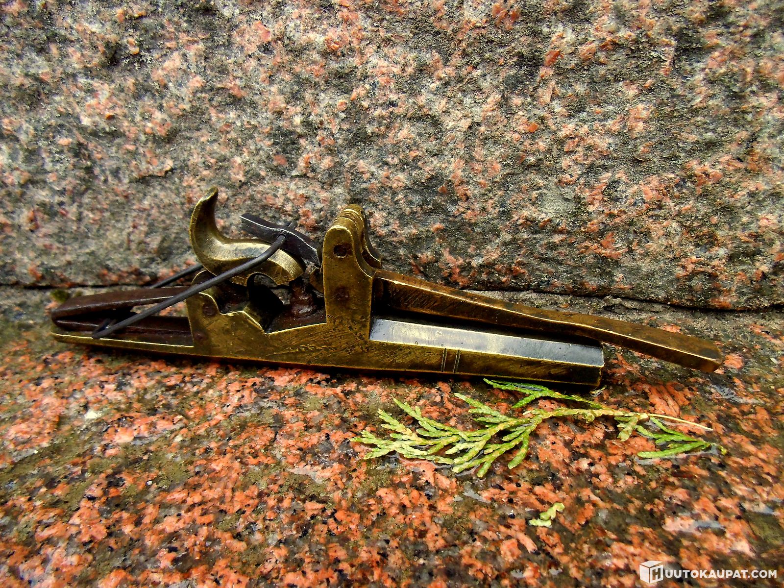 Ansa ase, HARVINAINEN !! Messinkinen nallilukko ase räpsä 1800-luku !!!, Vehmaa