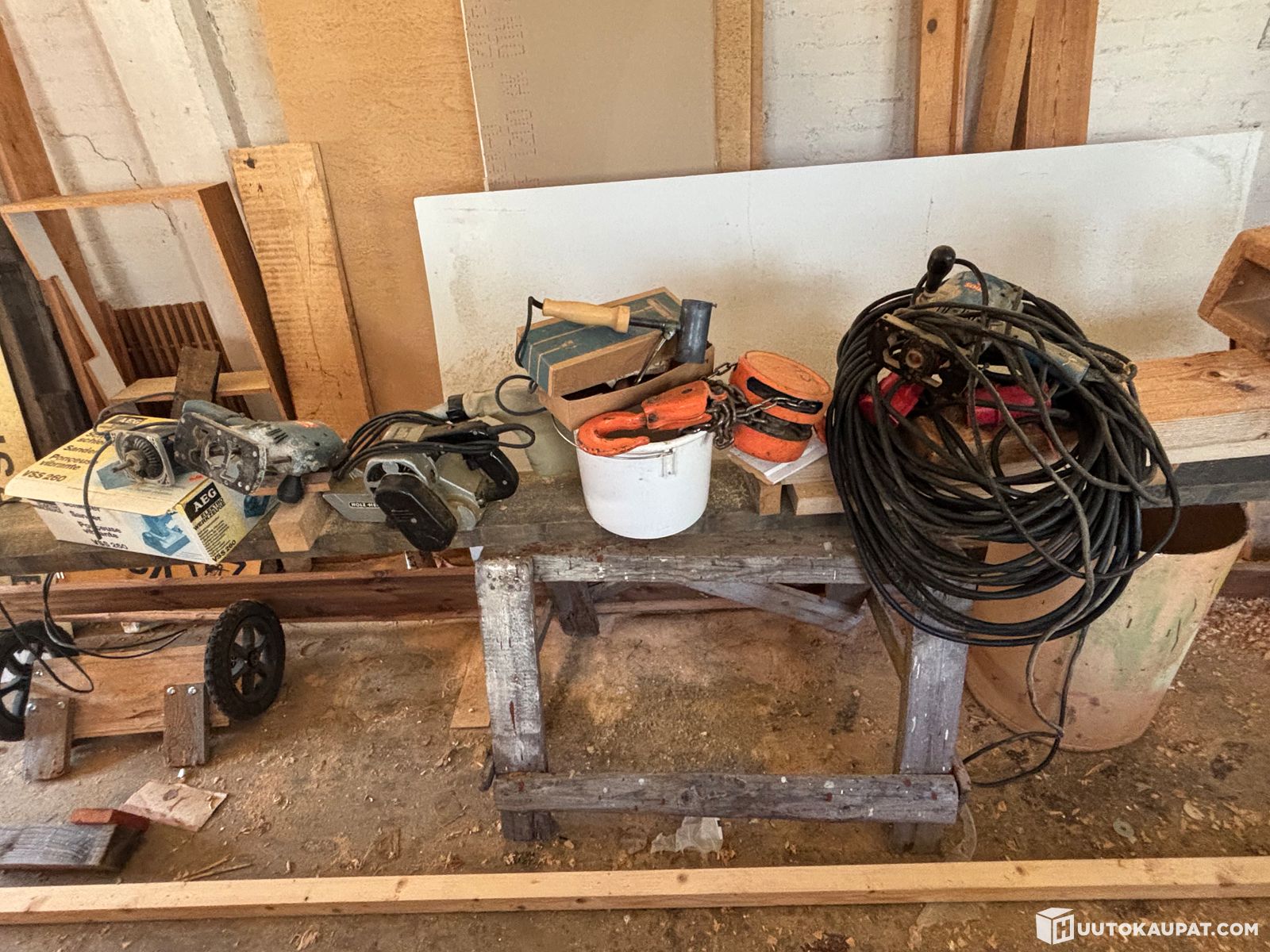 Puusepänverstaan koneita + irtainta: Sähkokoneita + nostotaljoja 2 kpl, Sysmä