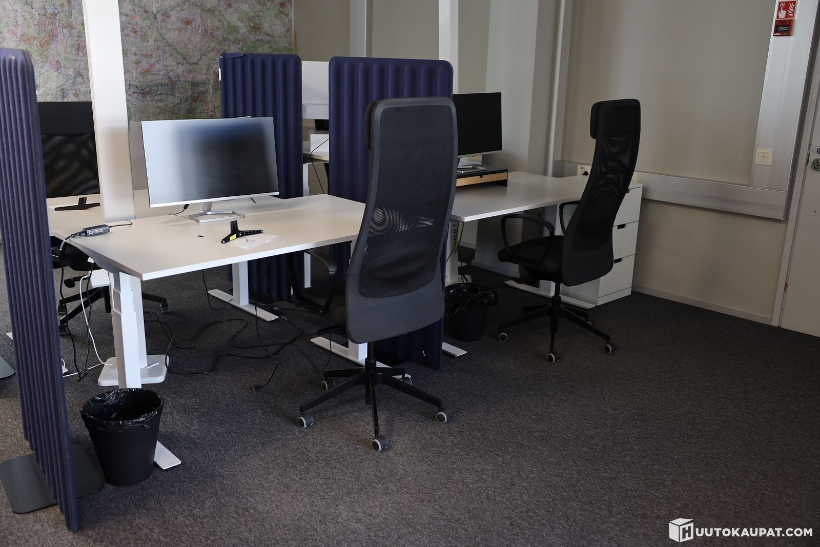 Sähköpöytä 2 kpl, lipasto, sermi, Hp näyttö 2 kpl, työtuoli 2 kpl (5), Helsinki