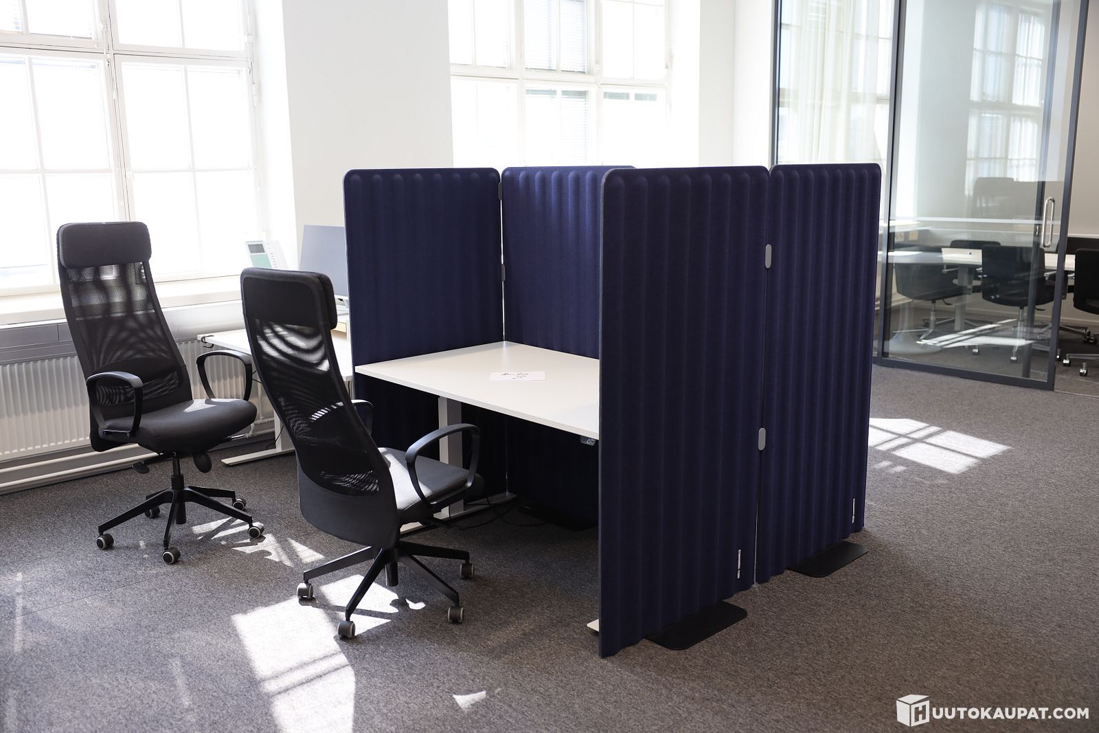 Sähköpöytä 3 kpl, pyöreä pöytä, Hp näyttö 3 kpl, sermi 5 kpl ja työtuoli 3 kpl (8), Helsinki