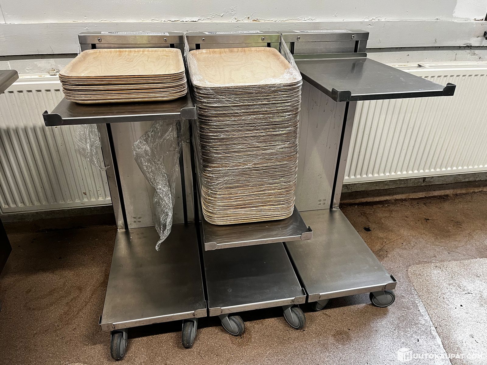 Tarjotinkärryt 3 kpl + tarjottimet ERÄ 9, Uusikaupunki