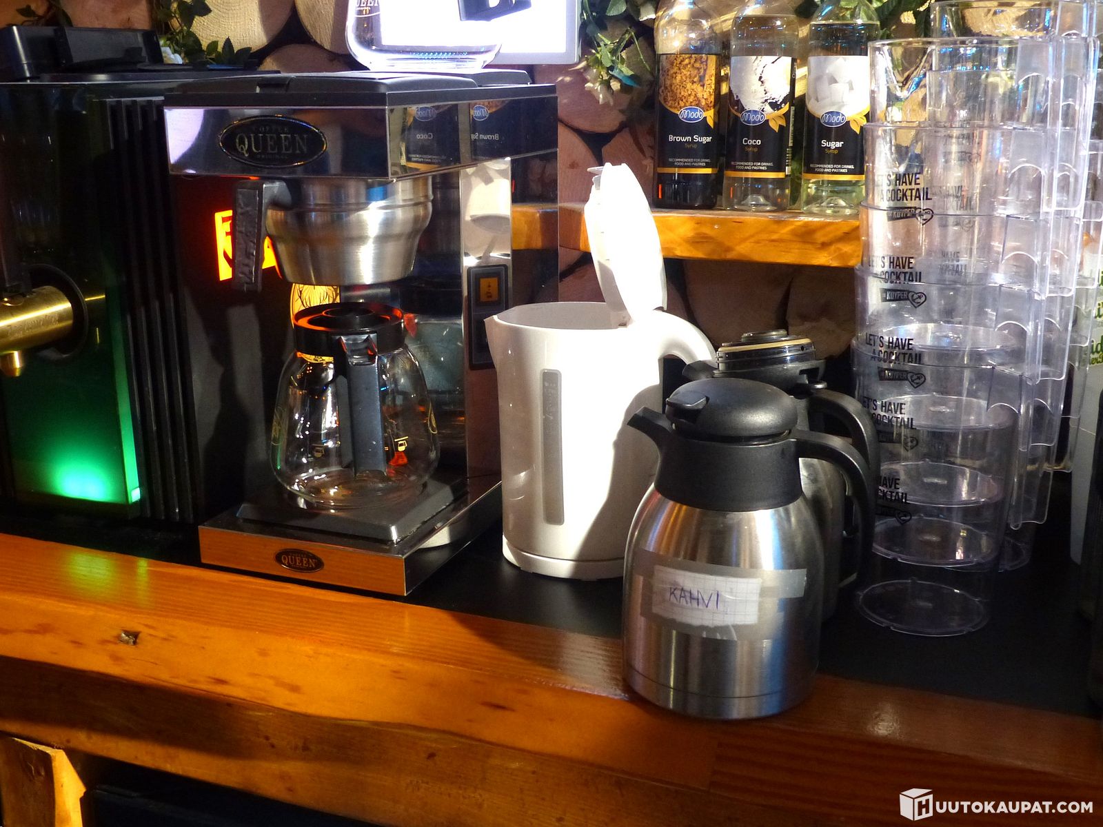 Coffee Queen CQ M-2-kahvinkeitin, vedenkeitin ja kaksi termaria. HBB3011. Restaurations Kompagniet Finland Oy (Heidi´s Bier Bar) konkurssipesä 3535417-5, Jyväskylä