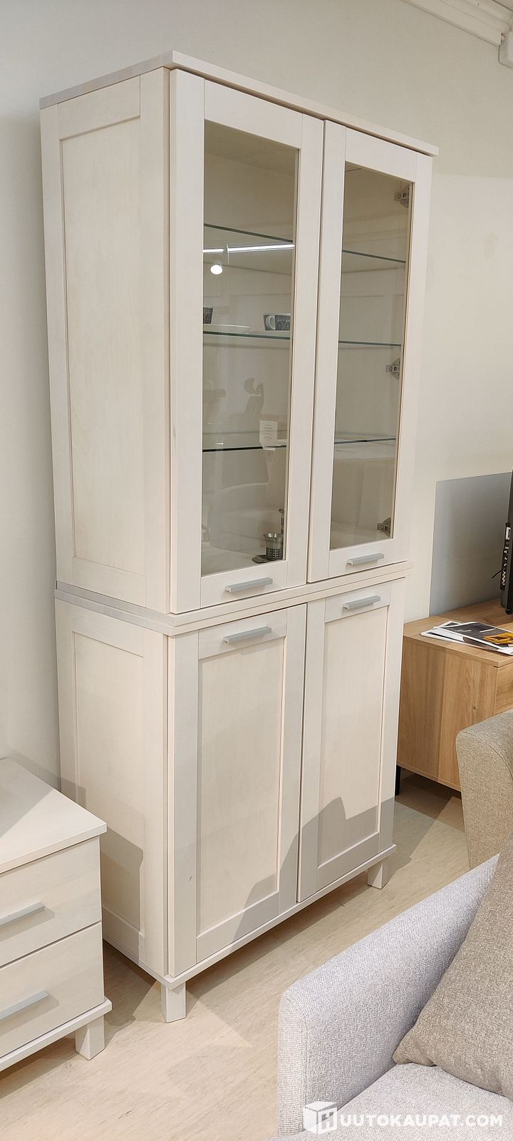 Massiivikoivu vitriini valkopetsillä, Oulu