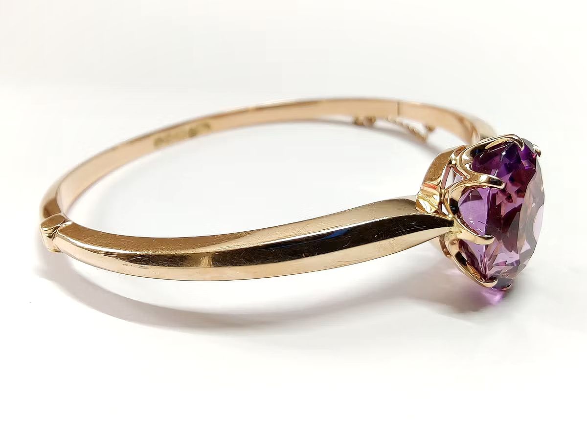 Kultainen ametistirannerengas (Auran Kultaseppä Oy, Turku, v. 1963) 585 14k, Mikkeli