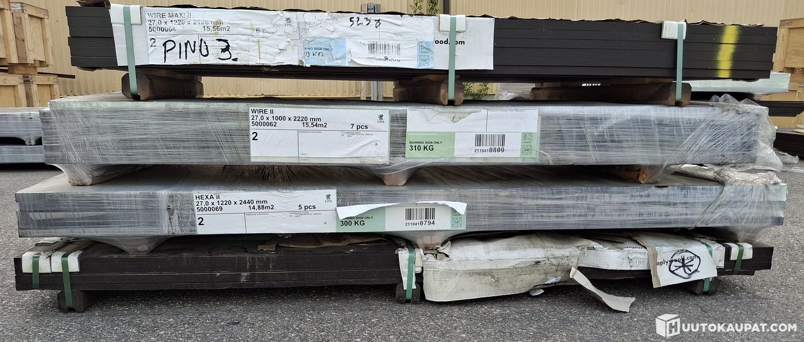 POISTOERÄ II-lk vaneria! Filmi 27mmx1220x2440 14,88 M2. Filmi 27mmx1000x2220 15,54 M2. Filmi 27mmx1220x2126 15,56 M2. Filmi 27mmx2440x2440 17,86 M2. VIERUMÄKI., Heinola
