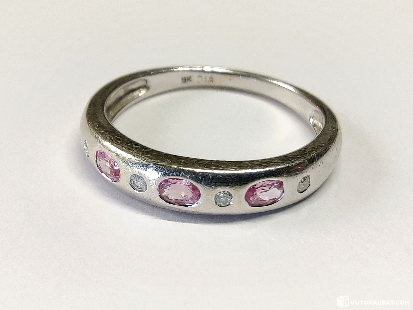 Valkokultainen timantti-safiirisormus 375 9k, Mikkeli
