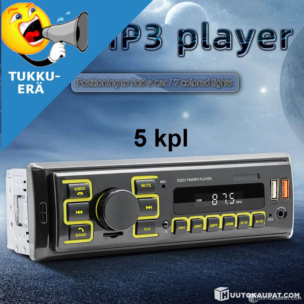 🔊 TUKKUERÄ: 5 kpl Uusia 1-DIN MP3-autoradioita, Hämeenlinna